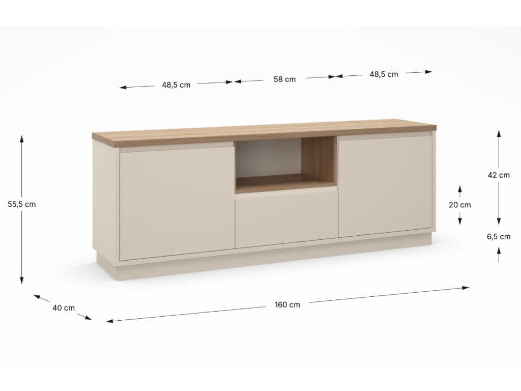 Podívám seKrémový lakovaný TV stolek Loreta 160 x 40 cm s dubovým dekorem