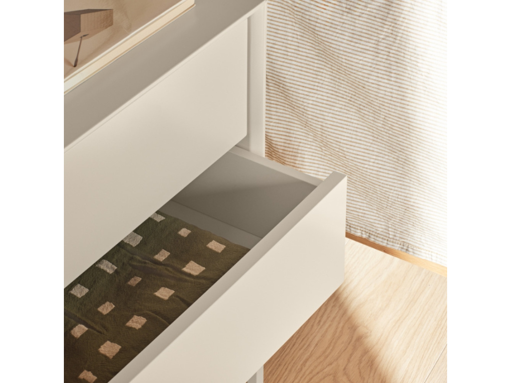 Hledáte kousek, který bude vypadat skvěle, ale nebude na sebe zbytečně strhávat pozornost? Noční stolek ze série Platt od španělské značky Teulat je přesně ten typ nábytku, který si zamilujete pro jeho jednoduchost, praktičnost a nadčasový šmrnc. Minimalistické linie a chytré rozvržení úložného prostoru dělají z Plattu parťáka, který vedle postele rozhodně oceníte. Kromě dvou zásuvek najdete ve spodní části také praktickou otevřenou polici, která se skvěle hodí třeba na knihy nebo časopisy. A jestli vám stačí méně úložného prostoru, můžete sáhnout po závěsné variantě nočních stolků, která je tvořena jednou zásuvkou.