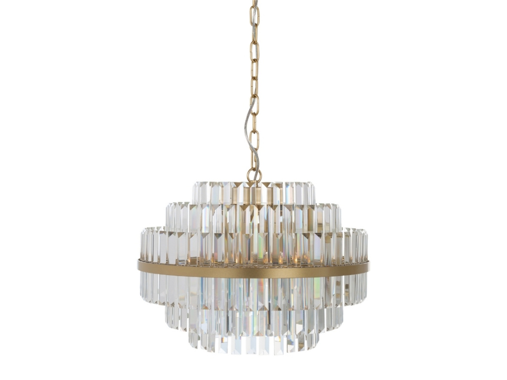 Křišťálový lustr Desire od značky Richmond bude luxusním doplňkem nejen v domácnosti, ale i v hotelovém salonku nebo baru. Je vyroben z těch nejkvalitnějších materiálů a zaručeně se stane předmětem konverzace. Zlatě lakovaný kovový baldachýn je obklopen křišťálovým stínidlem, které se postará o rovnoměrné osvětlení celého interiéru. Lustr Desire je nadčasovým kusem osvětlení a dodá vašemu interiéru nádech elegance a luxusu.