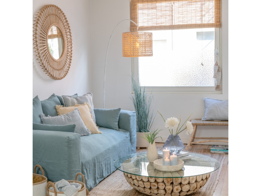 Ozdobte si svůj prostor kulatým zrcadlem Kare od značky J-Line. Zaujme svým originálně tvarovaným rámem, který je vyroben z proplétaného ratanu, díky čemuž se zároveň stane přírodním a stylovým prvkem v místnosti. Jeho zavěšení nad komodu na chodbě nebo v ložnici bude díky připevněnému háčku velmi jednoduché. Nejvíce mu to bude slušet ve skandinávských nebo boho interiérech.