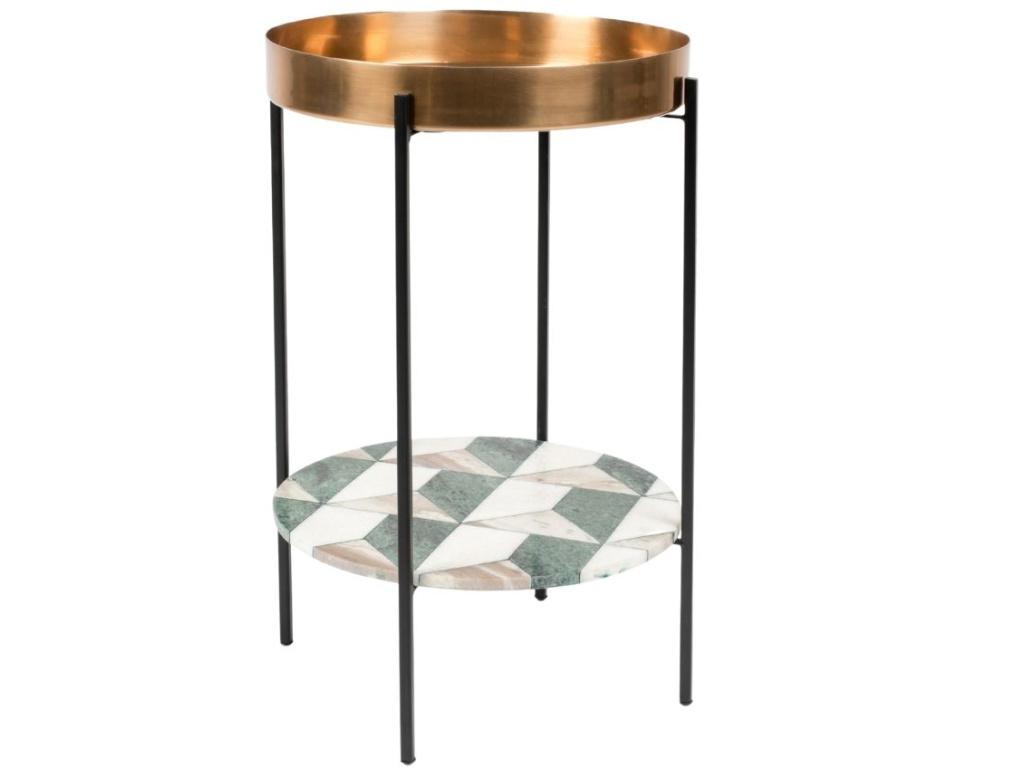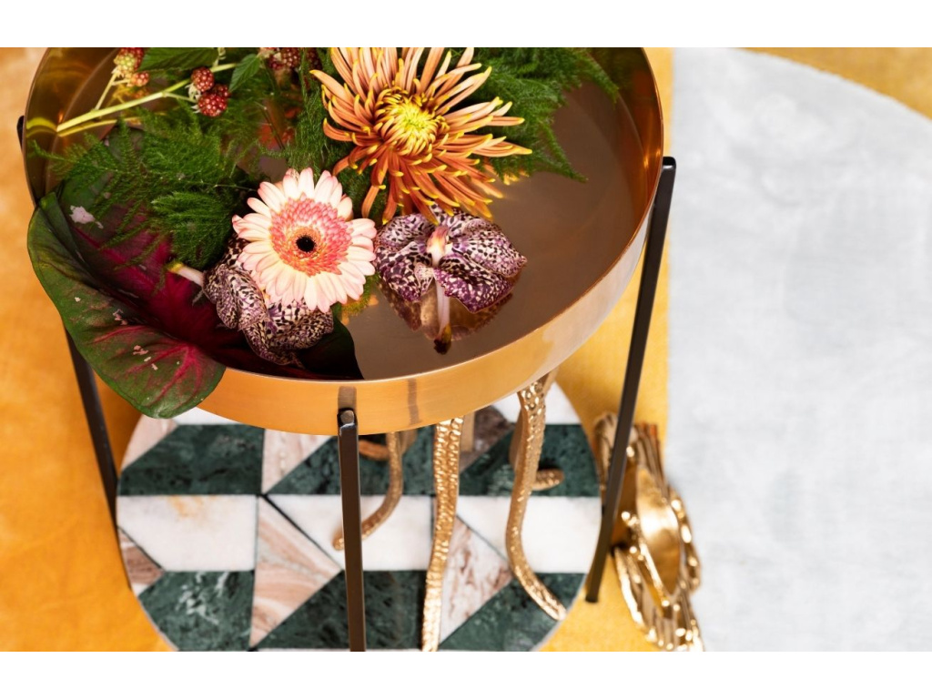Designový odkládací stolek Another Marble značky Bold Monkey v kulatém provedení se svým zpracováním řadí do stylu art deco. Stolek má dvě patra. Horní kovová deska má zdvižený okraj, který efektivně zabraňuje třeba rozlití nápojů po podlaze. Spodní a designově dominantní deska je vyrobena z mramoru a je složena z geometrických motivů v různých barvách. Stolek se skvěle hodí do moderně laděných interiérů a designového prostředí. Do domova i komerčních prostor, hotelů apod.