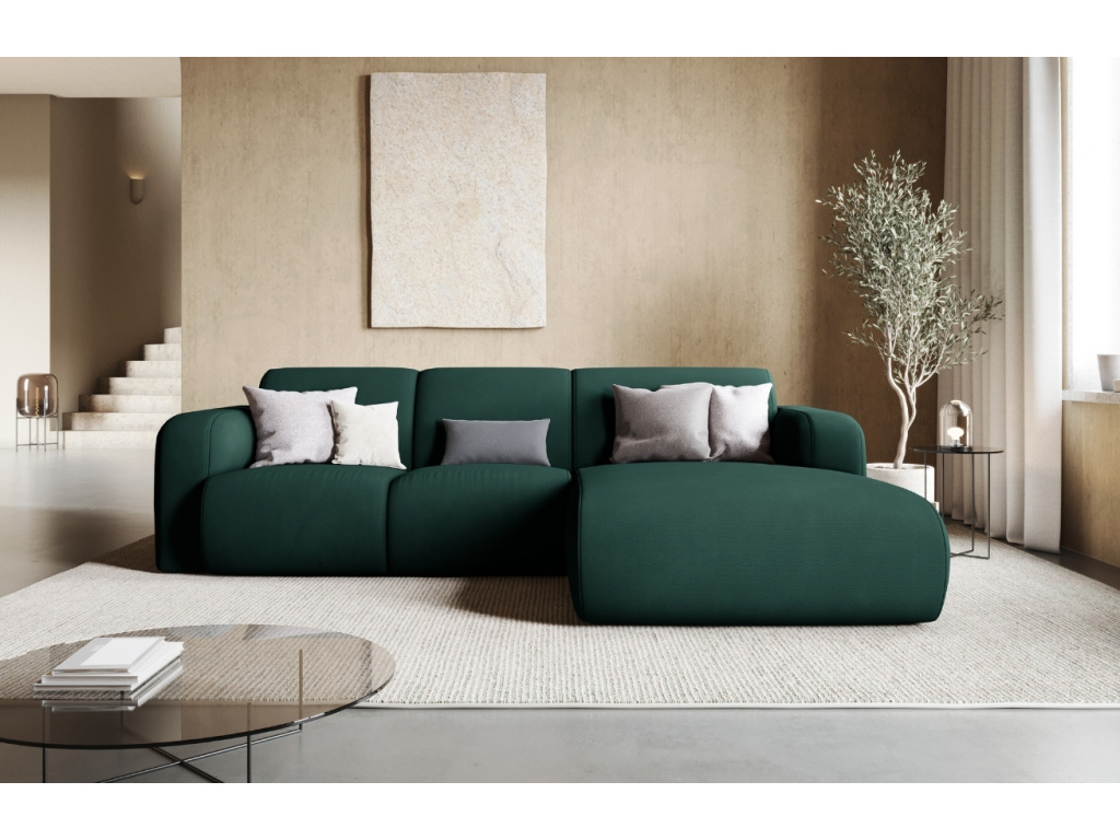 Luxus, maximální pohodlí a moderní design – to vše do vaší společenské místnosti přinese rohová pohovka Lola od značky Windsor & Co! O váš dokonalý odpočinek se postará čalounění ze strukturované látky v lahvově zeleném provedení, které je měkké na dotek. Látka je opatřena voděodolnou vrstvou, která představuje skvělého pomocníka pro ochranu povrchu před znečištěním. Pohovka Lola svými proporcemi nabídne prostorné a pohodlné místo pro 4 osoby. Pro sjednocení vašeho sedacího koutu doporučujeme pohovku doplnit také stylovým křeslem a podnožkami ze stejnojmenné série. Všechny produkty nabízíme v několika barvách. Odpočiňte si a relaxujte ve stylu!