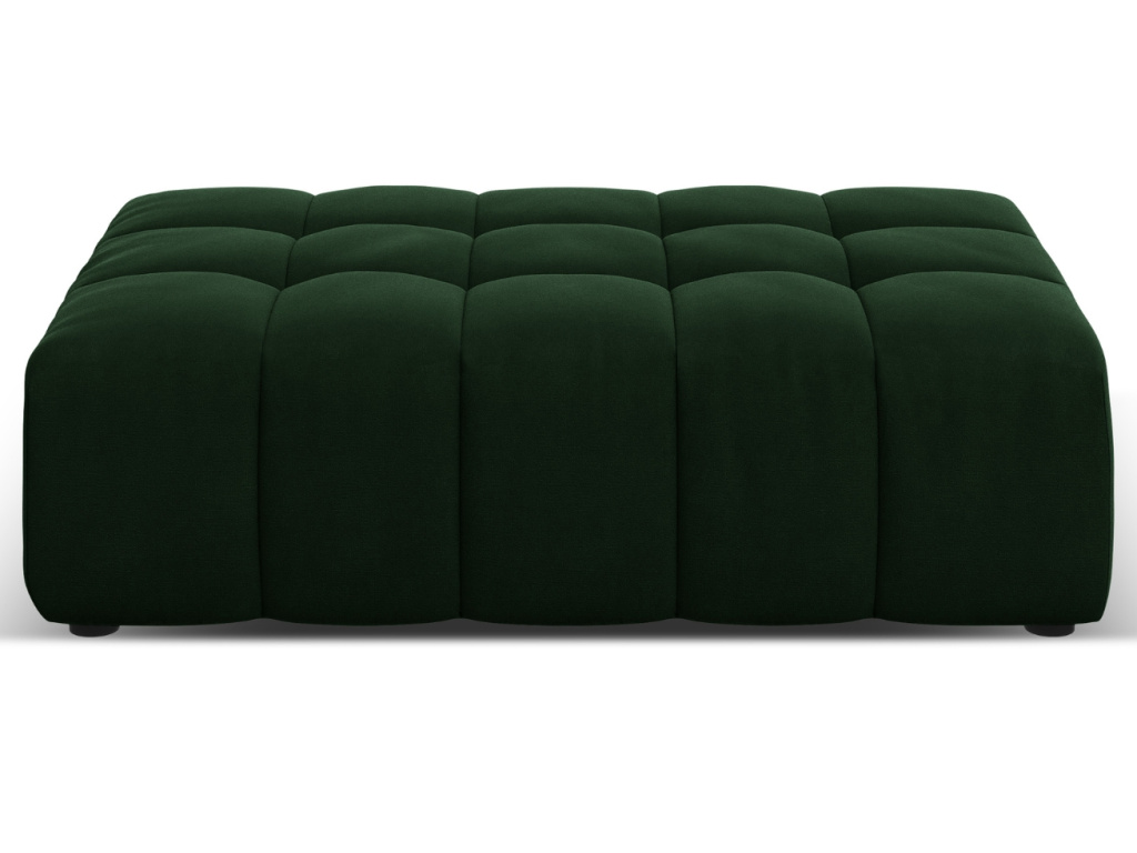 Podnožka Chicago od značky Cosmopolitan Design bude skvělým doplňkem k pohovkám či křeslu ze stejnojmenné kolekce. Stejně jako pohovky i ona zaujme charakteristickým prošíváním, které jí dodává nádech luxusu. Její sametové čalounění v lahvově zelené barvě je mimořádně měkké a pohodlné. Tkanina je velmi odolná proti oděru a absorpci tekutin, čímž zaručí dlouhodobé používání bez známek opotřebení. Tento skvostný kus nábytku nejen oslní na první pohled, ale především zútulní váš interiér ve skandinávském nebo glamour stylu. Chicago vám poslouží jako podnožka pro vaše unavené nohy nebo jako další možnost sezení pro rodinu či přátelé. Relaxujte ve stylu!
