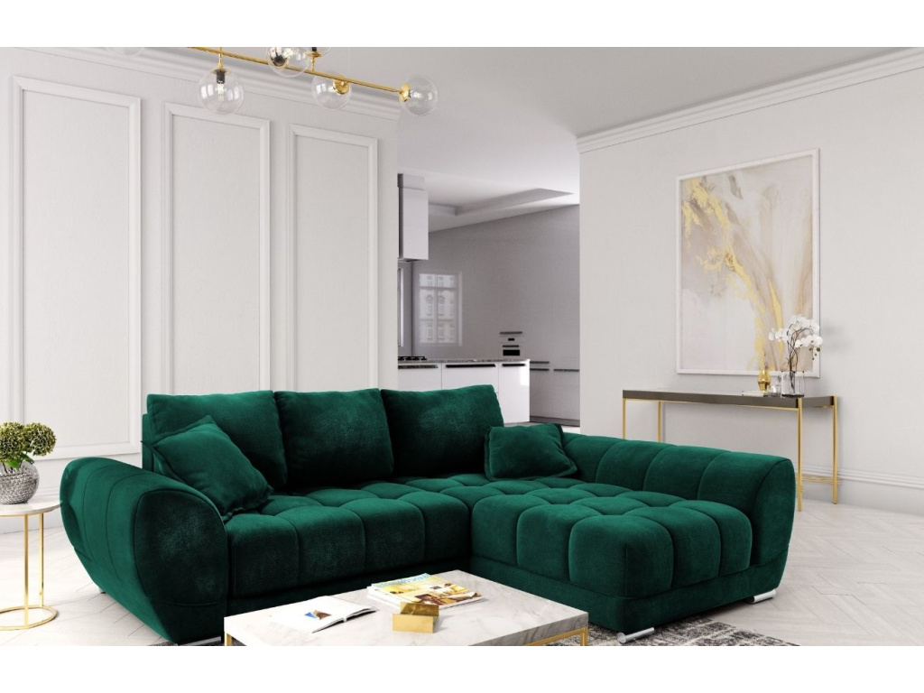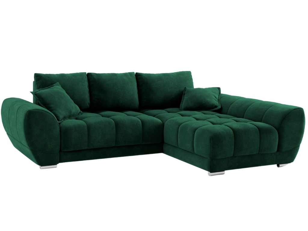 Designová čtyřmístná rohová pohovka Nuage od výrobce Windsor & Co se díky elegantním liniím a jemnému sametovému čalounění v zelené barvě stane ideálním místem pro odpočinek, posezení s rodinou, přáteli nebo romantické večery ve dvou. Atraktivní prošívání a minimalistická kovová podnož v kombinaci s látkou příjemnou na dotek dodá vašemu obývacímu pokoji jedinečný styl. Maximální komfort zajistí dva dekorativní polštářky. Látka disponuje voděodolnou technologií, je tedy vhodná pro rodiny s dětmi a domácími mazlíčky. Díky vlastnostem se však hodí i do komerčních prostor jako jsou hotelové haly apod. Pohovka je rozkládací, rázem se z ní stane pohodlné lůžko pro vaše hosty.