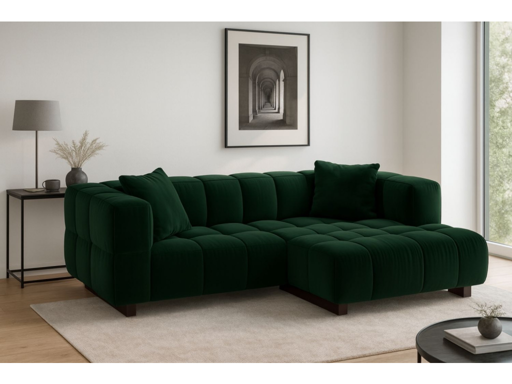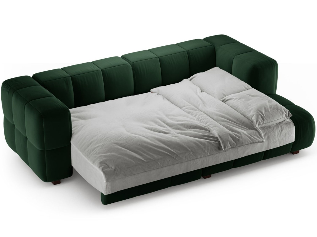 To chciLahvově zelená sametová rozkládací pohovka Puma 260 cm, pravá