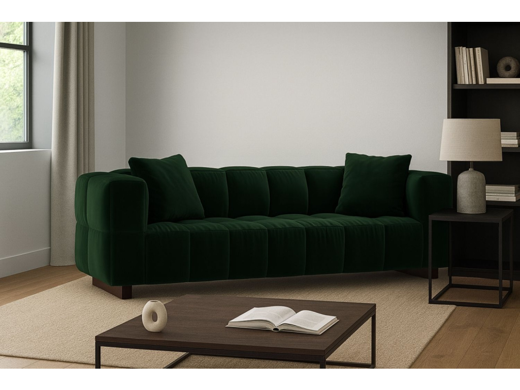 To chciLahvově zelená sametová rozkládací pohovka Puma 260 cm