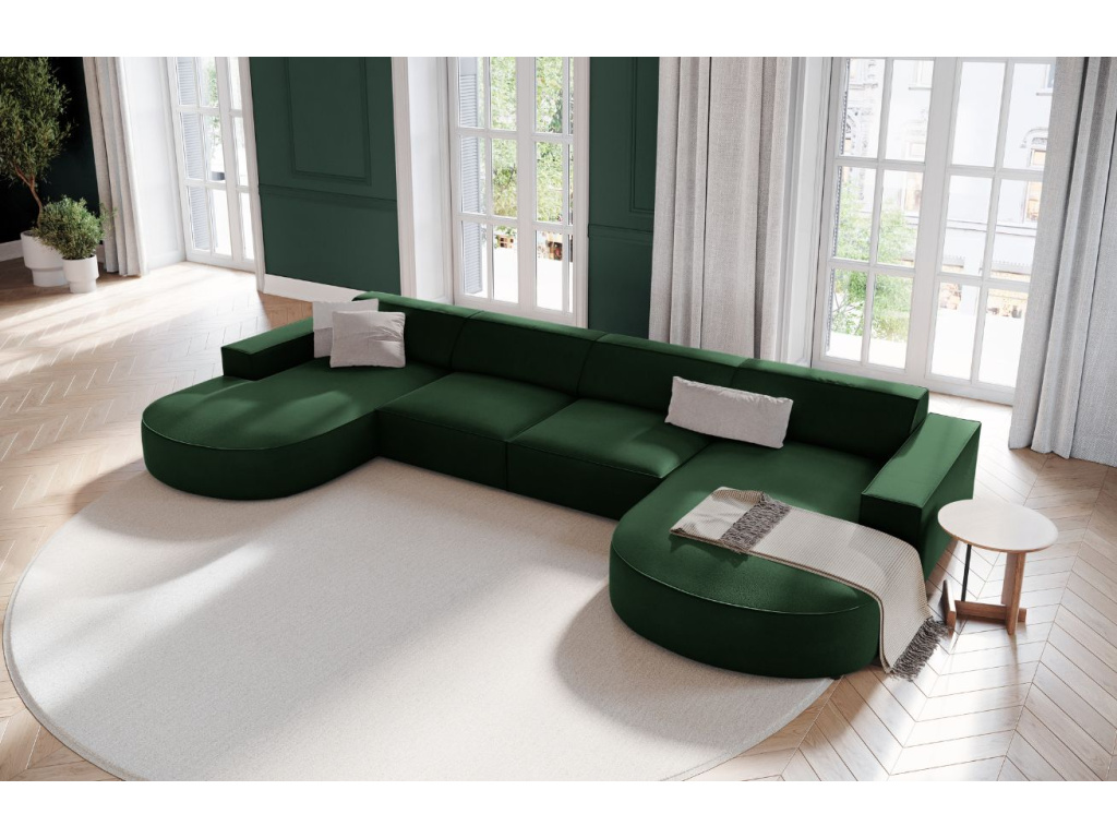 Prostorná modulární šestimístná pohovka Jodie od značky Micadoni zaujme svou krásnou siluetou. Čalounění je vyrobené z tkaniny, která imituje samet s jemným leskem. Látka se vyznačuje dobrou odolností proti oděru, což výrazně snižuje riziko jejího poškození, také prošla testem na cigarety, díky tomu je pohovka vhodná i do komerčních prostor. Její polstrovaný tvar vám zaručí plnohodnotný odpočinek, zatímco hluboký sedák umožní dokonalou relaxaci. Opřít se můžete také o tvarované opěráky a široké područky, které vybízejí k nespoutanému lenošení. Nízká podnož ladí s útulnou siluetou nábytku. Velký výběr modulů vám umožní vytvořit si kombinace, které budou nejlépe vyhovovat vašemu obývacímu pokoji v minimalistickém či skandinávském stylu.