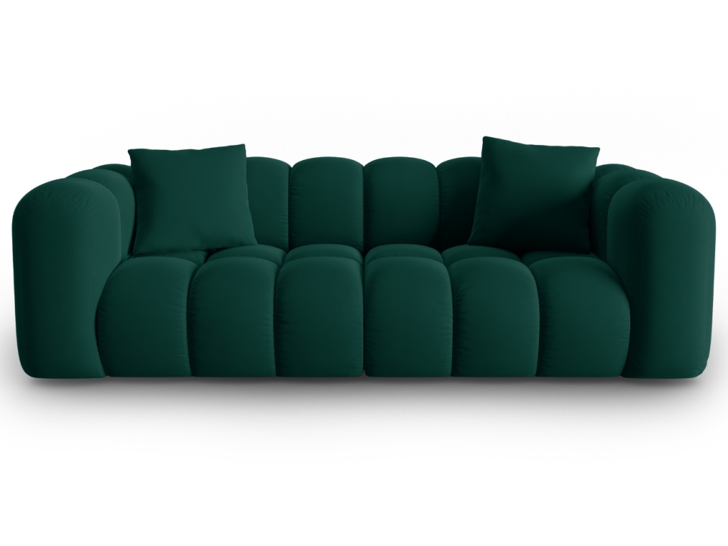 Velkolepá třímístná pohovka Halley od značky Windsor & Co zaujme charakteristickým prošíváním. Bublinkové sedáky, opěradla a područky vybízejí k nespoutané relaxaci. Pohovka je čalouněná sametovou látkou s jemným leskem v lahvově zeleném provedení, která je měkká a velice příjemná na dotek. Tkanina je velmi odolná proti oděru a absorpci tekutin, čímž zaručí dlouhodobé používání bez známek opotřebení. Látka navíc prošla cigaretovým testem, tudíž je odolná proti doutnání a vznícení. Tento skvostný kus nábytku nejen zaujme na první pohled, ale především zútulní váš interiér ve skandinávském nebo glamour stylu. Příjemným bonusem jsou elegantní polštářky, které doladí pohovku k dokonalosti. Pro sjednocení vašeho sedacího koutu doporučujeme pohovku doplnit také o podnožkou ze stejnojmenné série. Všechny produkty nabízíme v několika barvách. Odpočiňte si a relaxujte ve stylu!