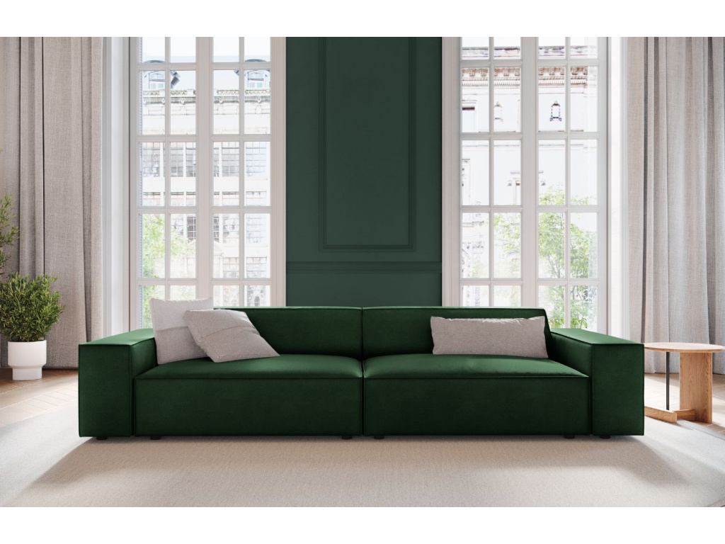 Prostorná modulární trojmístná pohovka Jodie od značky Micadoni zaujme svou krásnou siluetou. Čalounění je vyrobené z tkaniny, která imituje samet s jemným leskem. Látka se vyznačuje dobrou odolností proti oděru, což výrazně snižuje riziko jejího poškození, také prošla testem na cigarety, díky tomu je pohovka vhodná i do komerčních prostor. Její polstrovaný tvar vám zaručí plnohodnotný odpočinek, zatímco hluboký sedák umožní dokonalou relaxaci. Opřít se můžete také o tvarované opěráky a široké područky, které vybízejí k nespoutanému lenošení. Nízká podnož ladí s útulnou siluetou nábytku. Velký výběr modulů vám umožní vytvořit si kombinace, které budou nejlépe vyhovovat vašemu obývacímu pokoji v minimalistickém či skandinávském stylu.