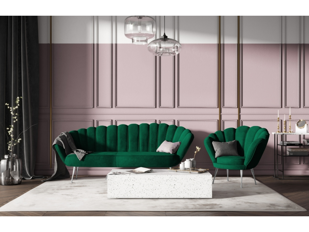 Křeslo Kingston značky Cosmopolitan Design představuje spojení elegance a neotřelého vzhledu. Jeho jemně lesklé sametové čalounění v lahvově zeleném odstínu je hebké a příjemné na dotek. Tkanina je velmi odolná proti oděru a absorpci tekutin, čímž zaručí dlouhodobé používání bez známek opotřebení. Celkový design křesla doplňuje stříbrná kovová podnož. Pro dokonale sladěný sedací kout doporučujeme křeslo doplnit o pohovku ze stejnojmenné série. Křeslo je dostupné v 11 barevných provedeních, od šedých tónů až po výrazné a pestré barvy. Užijte si pohodlí a styl v jednom!
