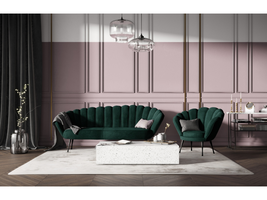 Křeslo Kingston značky Cosmopolitan Design představuje spojení elegance a neotřelého vzhledu. Jeho jemně lesklé sametové čalounění v lahvově zeleném odstínu je hebké a příjemné na dotek. Tkanina je velmi odolná proti oděru a absorpci tekutin, čímž zaručí dlouhodobé používání bez známek opotřebení. Celkový design křesla doplňuje černě lakovaná kovová podnož. Pro dokonale sladěný sedací kout doporučujeme křeslo doplnit o pohovku ze stejnojmenné série. Všechny produkty nabízíme v sedmi barevných provedeních. Užijte si pohodlí a styl v jednom!