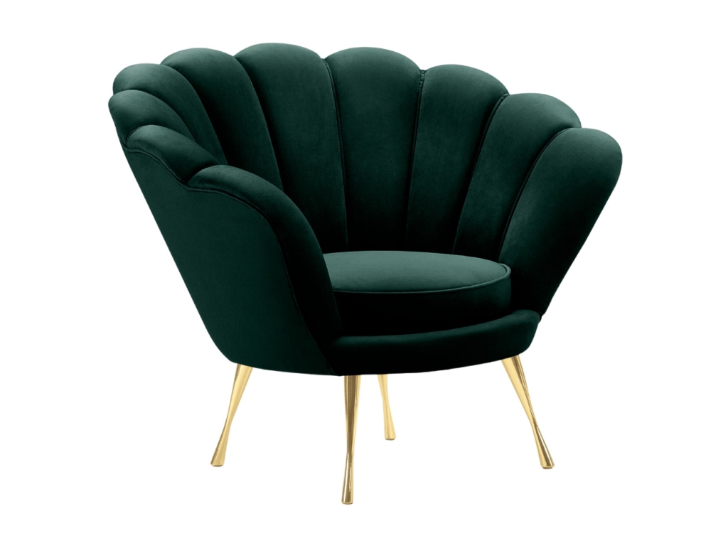 Křeslo Kingston značky Cosmopolitan Design představuje spojení elegance a neotřelého vzhledu. Jeho jemně lesklé sametové čalounění v lahvově zeleném odstínu je hebké a příjemné na dotek. Tkanina je velmi odolná proti oděru a absorpci tekutin, čímž zaručí dlouhodobé používání bez známek opotřebení. Celkový design křesla doplňuje zlatě lakovaná kovová podnož. Pro dokonale sladěný sedací kout doporučujeme křeslo doplnit o pohovku ze stejnojmenné série. Všechny produkty nabízíme v osmi barevných provedeních. Užijte si pohodlí a styl v jednom!