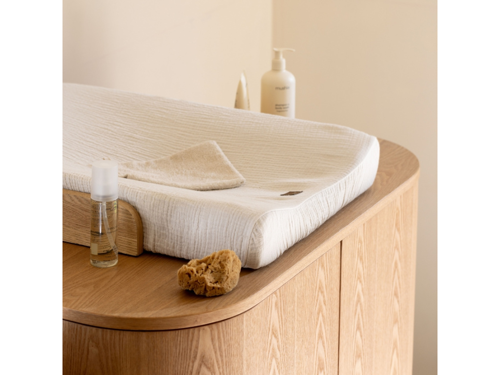 Doplňte dřevěnou komodu Quax Yume o přebalovací nástavbu, která je k ní kompatibilní. Nástavba se pyšní minimalistickým designem a je vyrobena z lakovaného MDF s krásnou přírodní strukturou dřeva. Zarážky zajistí, aby přebalovací podložka neklouzala a zůstala na svém místě. Doporučujeme kombinovat s podložkami Quax o velikosti 66 / 67 x 44 cm.