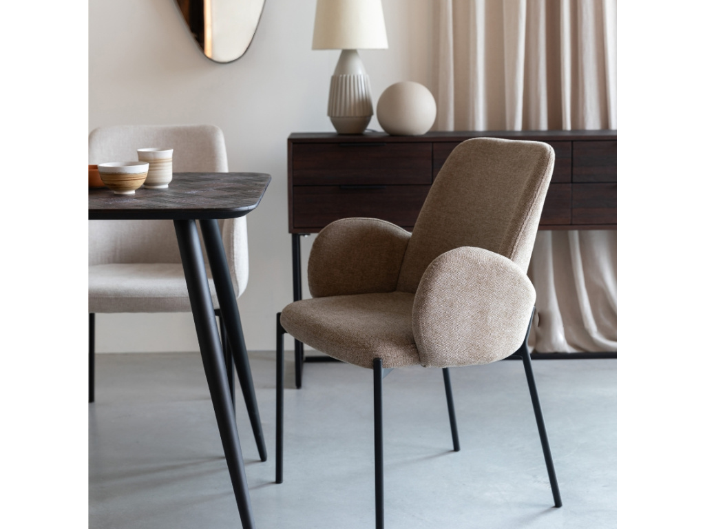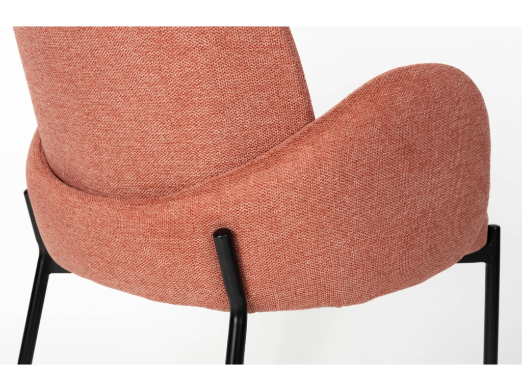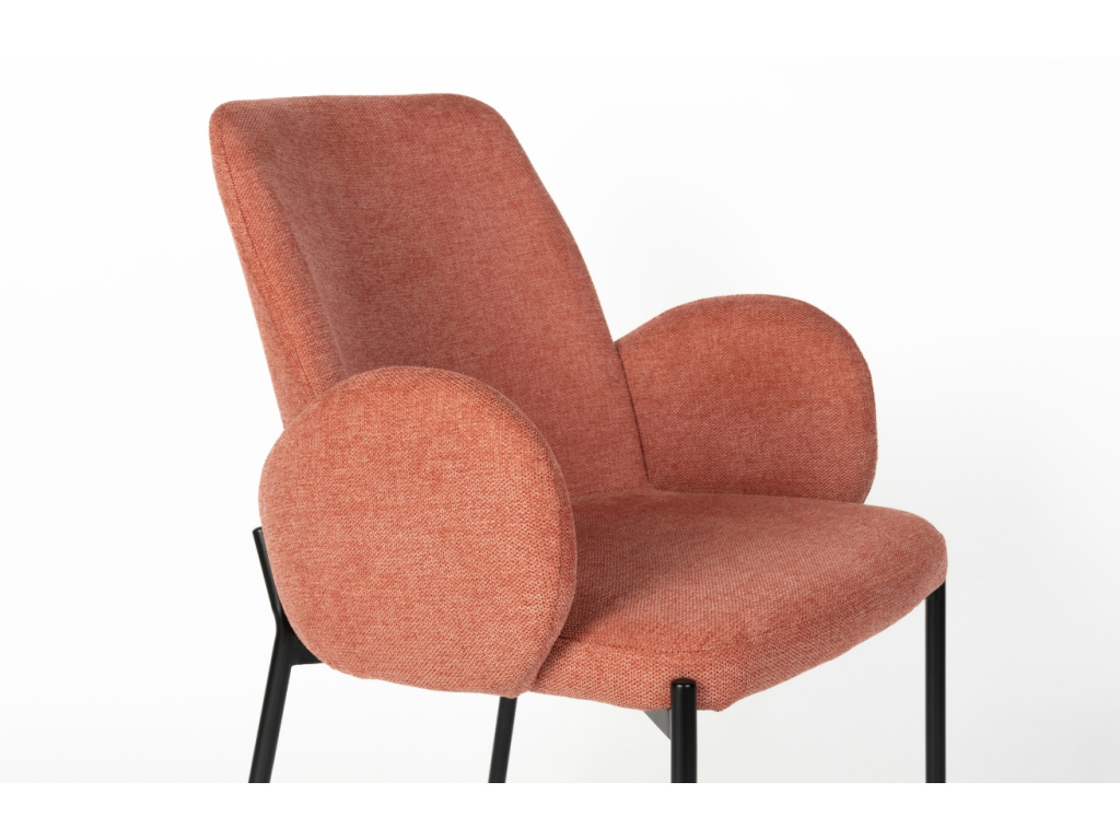 Jídelní židli TJARDA od značky White Label Living si zamilujete díky jejímu elegantnímu designu i vysokému komfortu při sezení u jídelního stolu. Její pohodlné látkové čalounění v lososvé barvě doplňuje jednoduchá štíhlá podnož z černě lakovaného kovu. Ta celému kousku dodává lehký a vzdušný nádech. Nepřehlédnutelnou dominantu židle představují kulaté područky, které dokonale ladí s celkovým designem židle. Židle TJARDA skvěle vynikne v moderních i klasických interiérech, ale i v prostorech s vintage nádechem.