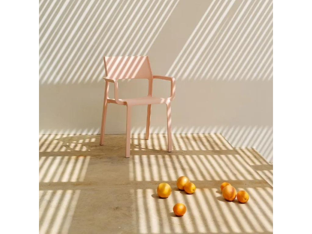 Designová jídelní židle Trill zaujme na první pohled svou jednoduchostí. Je vyrobena z odolného a lehkého polypropylenu, který je vyztužený skelným vláknem s vysokou odolností proti UV záření, díky čemuž se židle stává ideálním prvkem do venkovního prostředí. Její nadčasový design se bude skvěle hodit nejen na zahrady, ale také do komerčních prostor. Její výhodou jsou pohodlné područky a její stohovatelnost, což oceníte při rychlém a snadném úklidu většího počtu židlí. Židle je k dispozici v několika barevných variantách a můžete ji doplnit barovými židlemi, židlemi bez područek nebo podsedákem ze stejnojmenné série.