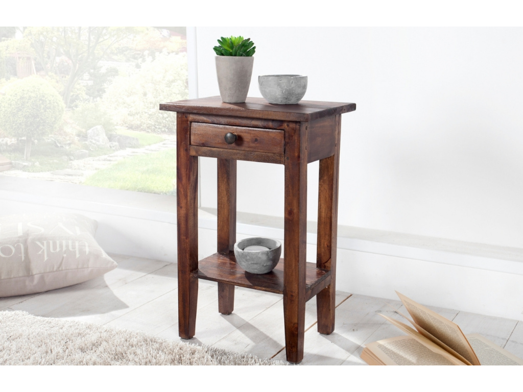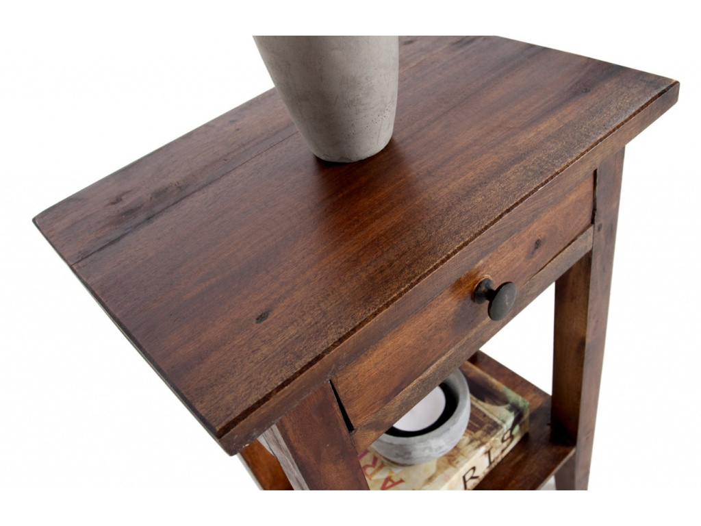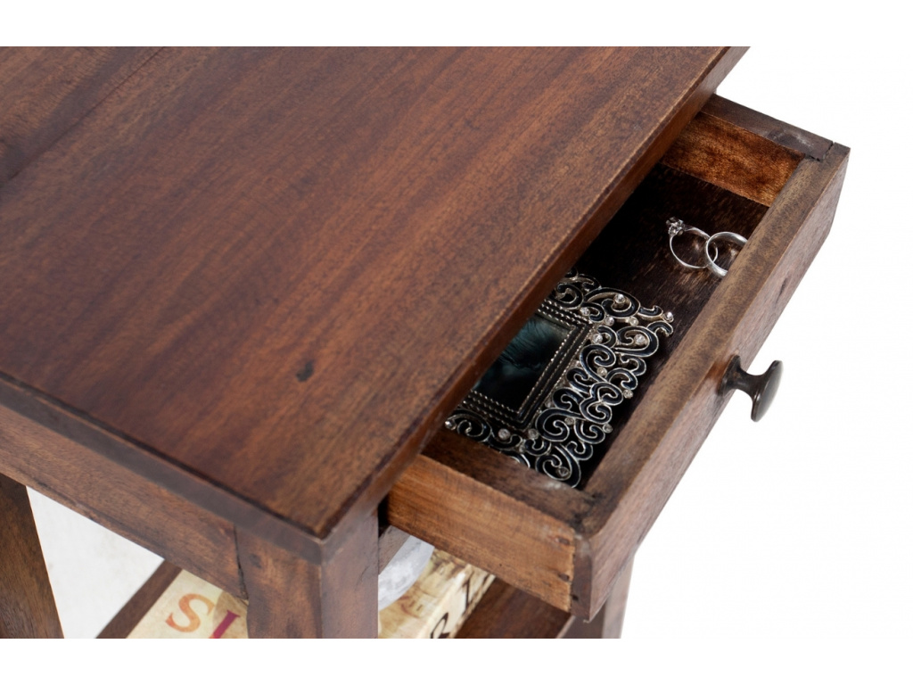 Unikátní odkládací stolek Rhodos je vyroben ze vzácného tropického a vysoce odolného mahagonového dřeva. Díky ruční výrobě je každý kus originál s vysoce propracovanými detaily, které dají vyniknout struktuře tohoto jedinečného materiálu. Stolek je doplněn o praktickou zásuvku v horní části a polici ve spodní. Svým klasickým venkovským vzhledem tak perfektně doplní váš interiér.