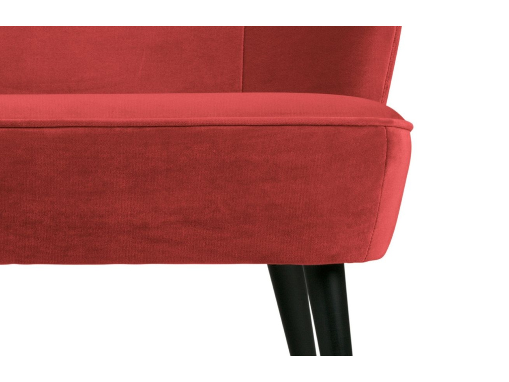 Designová pohovka Norma vás okouzlí svým retro stylem. Pohovka je čalouněná sametovou látkou ve stylovém malinově růžovém odstínu, podnož tvoří čtyři oválné nohy z černě lakovaného dřeva. Pohovka Norma je velmi stylovým a elegantním prvkem, který rozzáří každý obývací pokoj nebo například hotelový salonek či lobby.