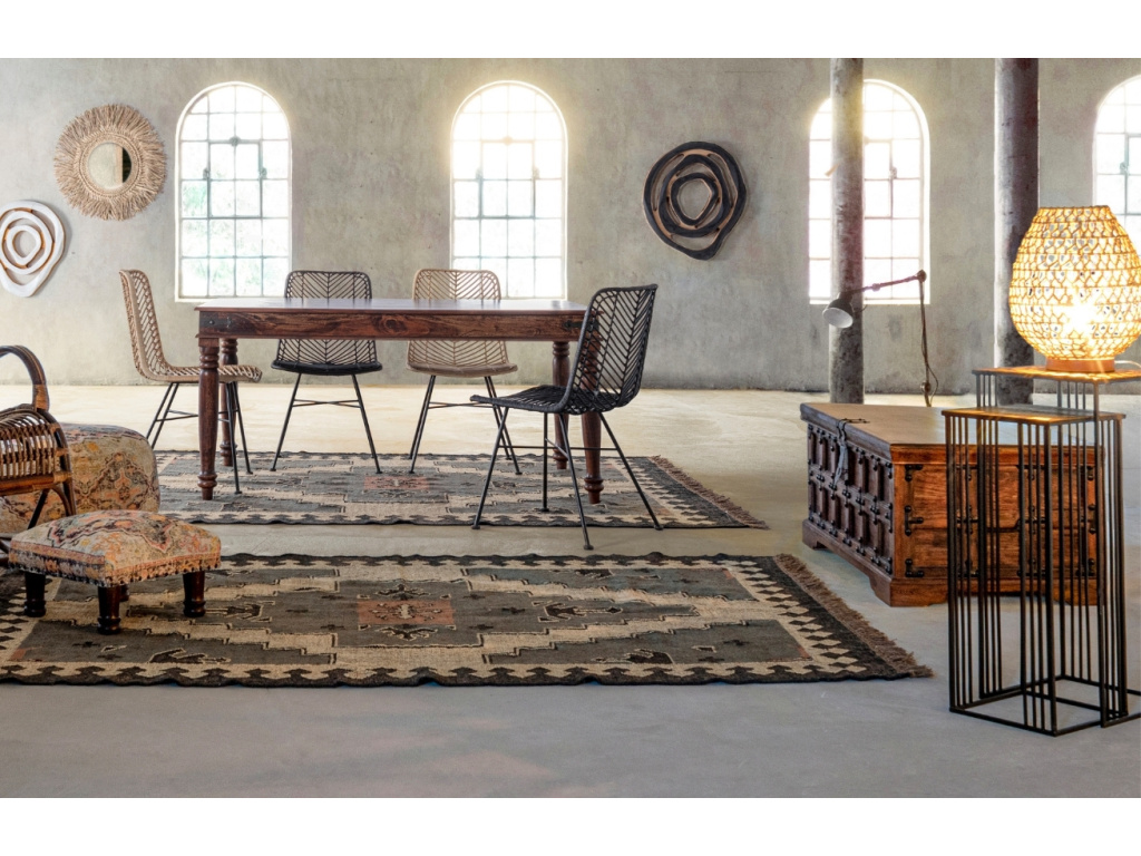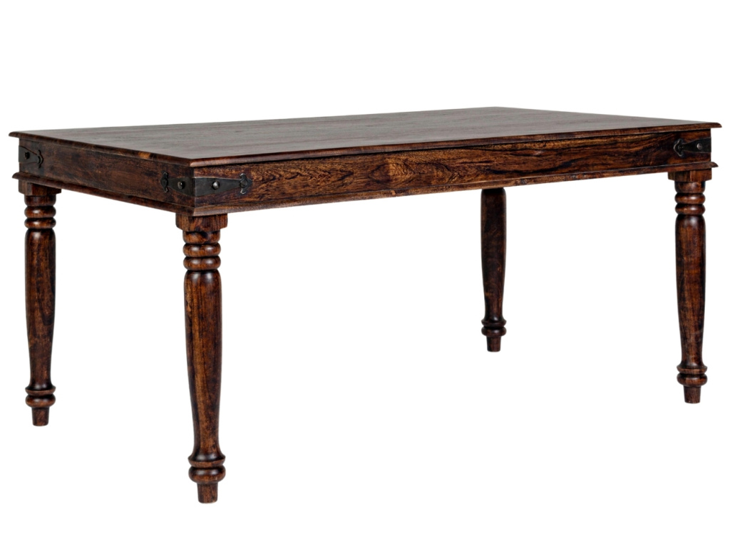 Masivní akáciový jídelní stůl Bizzotto Jampur vás zaujme na první pohled. Celý stůl je vyroben z masivního akáciového dřeva v tmavě hnědém odstínu. Krásný vzor dřeva je zvýrazněn různými dekorativními prvky jako jsou kovové spojnice v rozích stolu nebo barokní styl podnože. U jídelního stolu Bizzotto Jampur snadno pohostíte až šest hostů. Díky svému jedinečnému designu se Jampur hodí spíše do klasicky zařízených interiérů nebo vynikne v kombinaci s kovovými prvky.