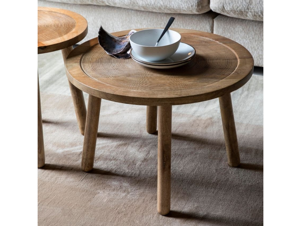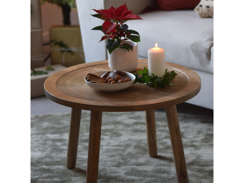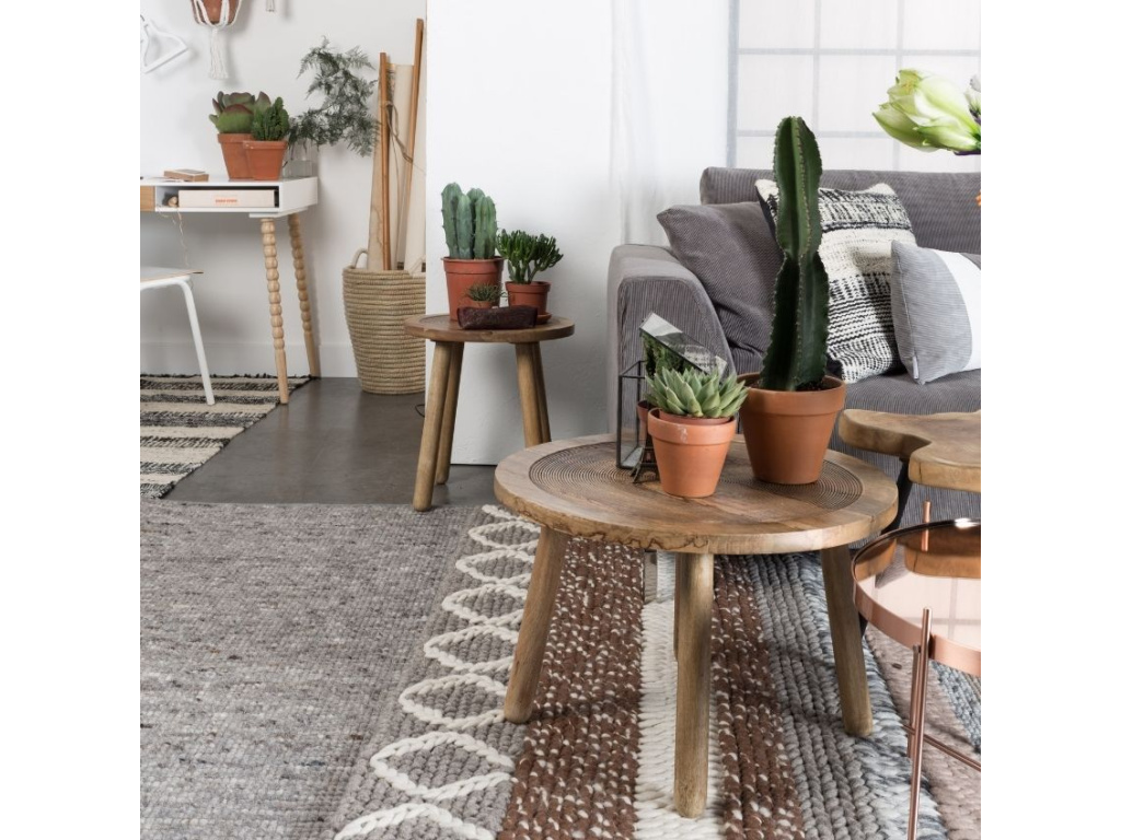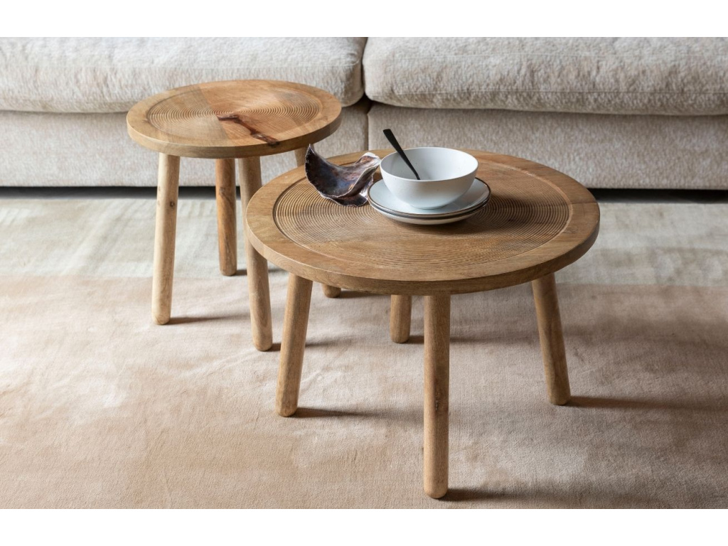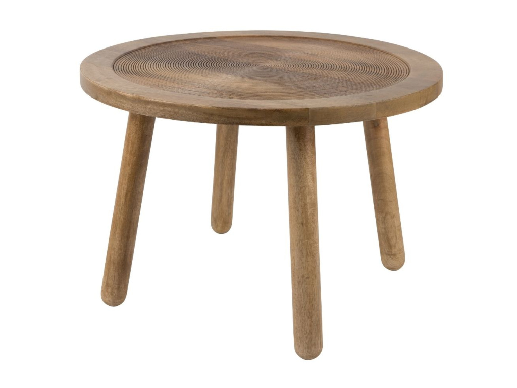 Stolek z mangového dřeva surového designu ZUIVER DENDRON L Ø 60 cm, který působí skvěle jako masivní monument interiéru a díky hřejivému materiálu mangového dřeva zútulní váš domov. Výrazným detailem stolku je průřez na vrchní straně desky, který vytváří kruhový reliéf se zvýšeným okrajem.