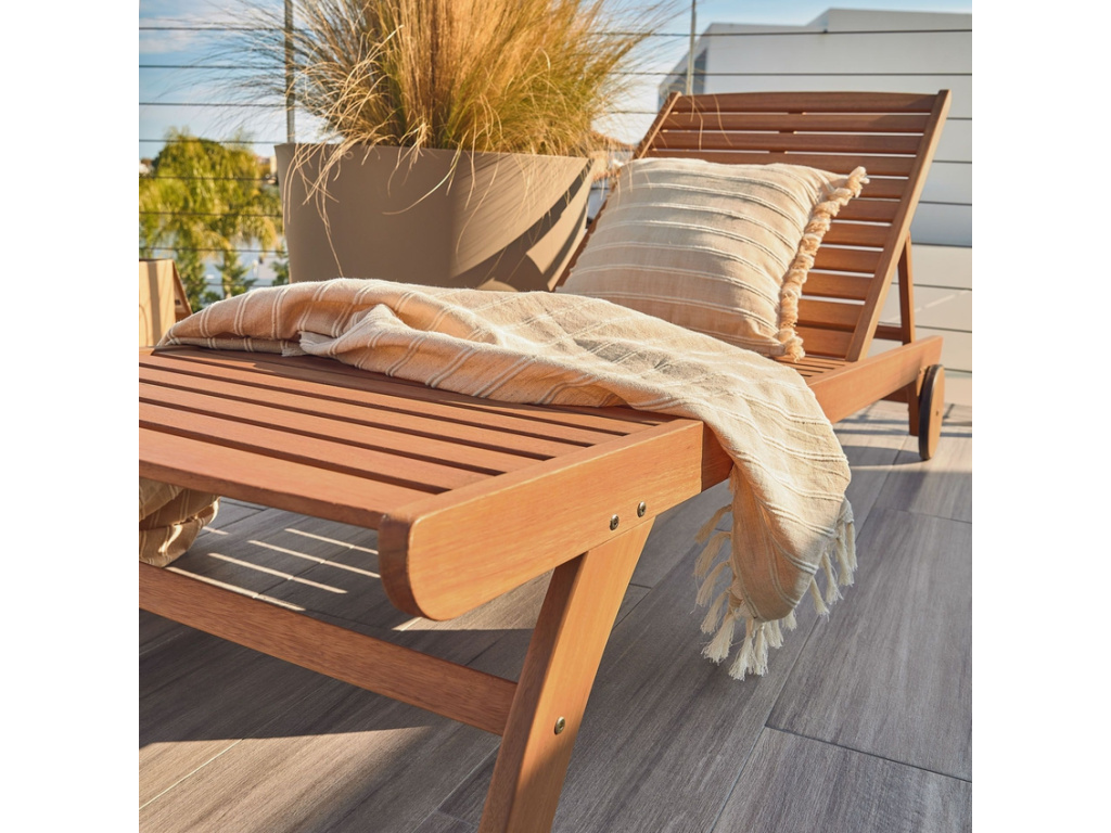Lehátko Kave Home Beila je charakteristické pro svůj design z přírodního materiálu. Masivní eukalyptové dřevo společně s jeho přírodním odstínem dodává lehátku příjemný a decentní vzhled. Praktickým detailem jsou čtyři polohy lehátka a posuvná kolečka, díky kterým můžete lehátko snadno přemístit. Lehátko se skvěle hodí do venkovního prostředí, zahrad, altánů, apod.