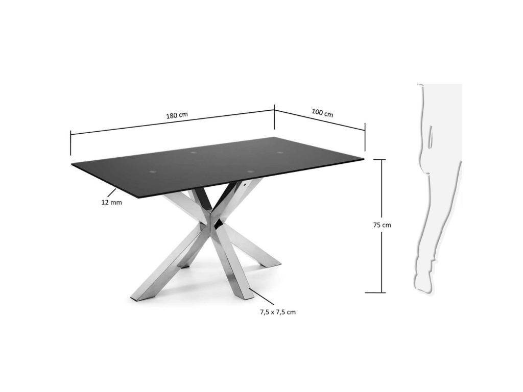 Matně černý skleněný jídelní stůl Kave Home Argo 180 x 100 cm s nerezovou podnoží