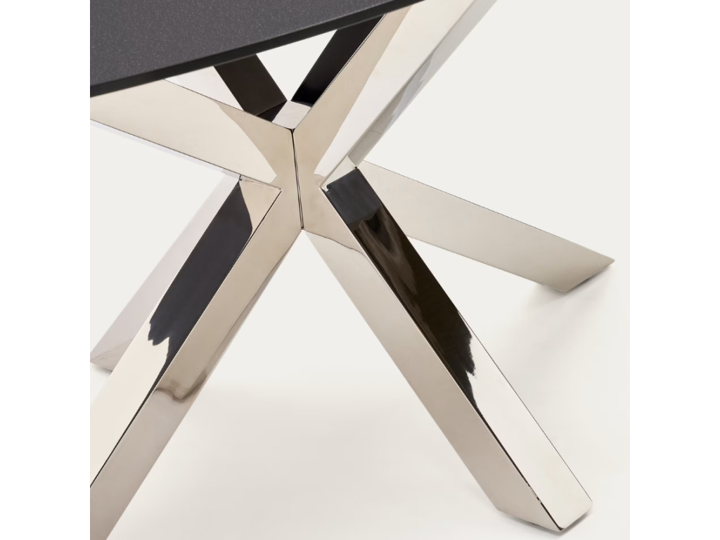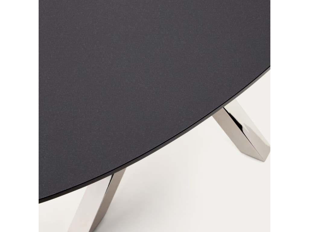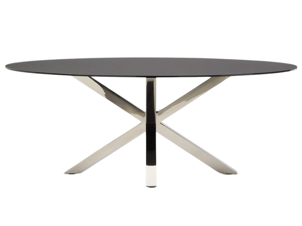 Krásný a nadčasový oválný jídelní stůl Kave Home Argo vás na první pohled zaujme svým originálním a propracovaným designem. Jeho podnož je vyrobena z nerezové oceli a má zajímavý tvar připomínající hvězdu. Zajišťuje perfektní stabilitu a navíc každého na první pohled zaujme. Desku tvoří matně černé tvrzené sklo, které se s podnoží skvěle doplňuje. Tento jídelní stůl se bude vyjímat zejména v rustikálních interiérech. Díky svým rozměrům je skvělou volbou zejména pro početnější rodiny.