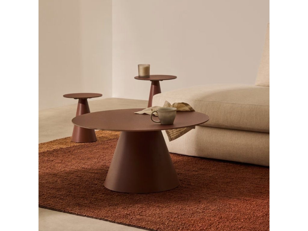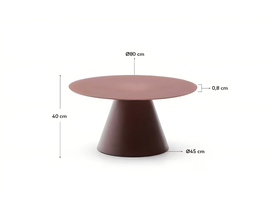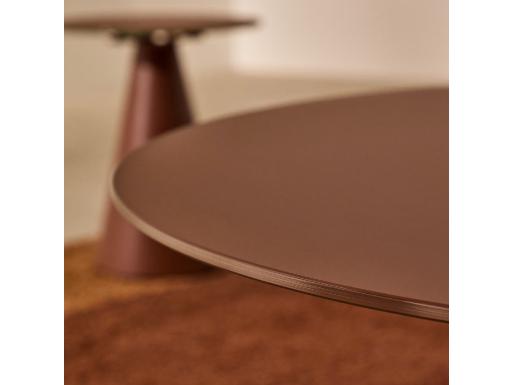 Kulatý konferenční stolek Kave Home Wilshire vás zaujme svými geometrickými liniemi a matným zbarvením v terakotově červeném odstínu. Je tvořený deskou z temperovaného tvrzeného skla, kterou si zamilujete pro její povrchovou úpravu – je totiž odolná proti otiskům prstů. Podnož stolu dodává svým kuželovitým tvarem produktu elegantní nádech, navíc je opatřena palstovými nastavitelnými chrániči, díky kterým se nemusíte poškození podlahy. Wilshire představuje stylový minimalistický kousek, který v interiéru doporučujeme doplnit dalšími produkty z této atraktivní série.