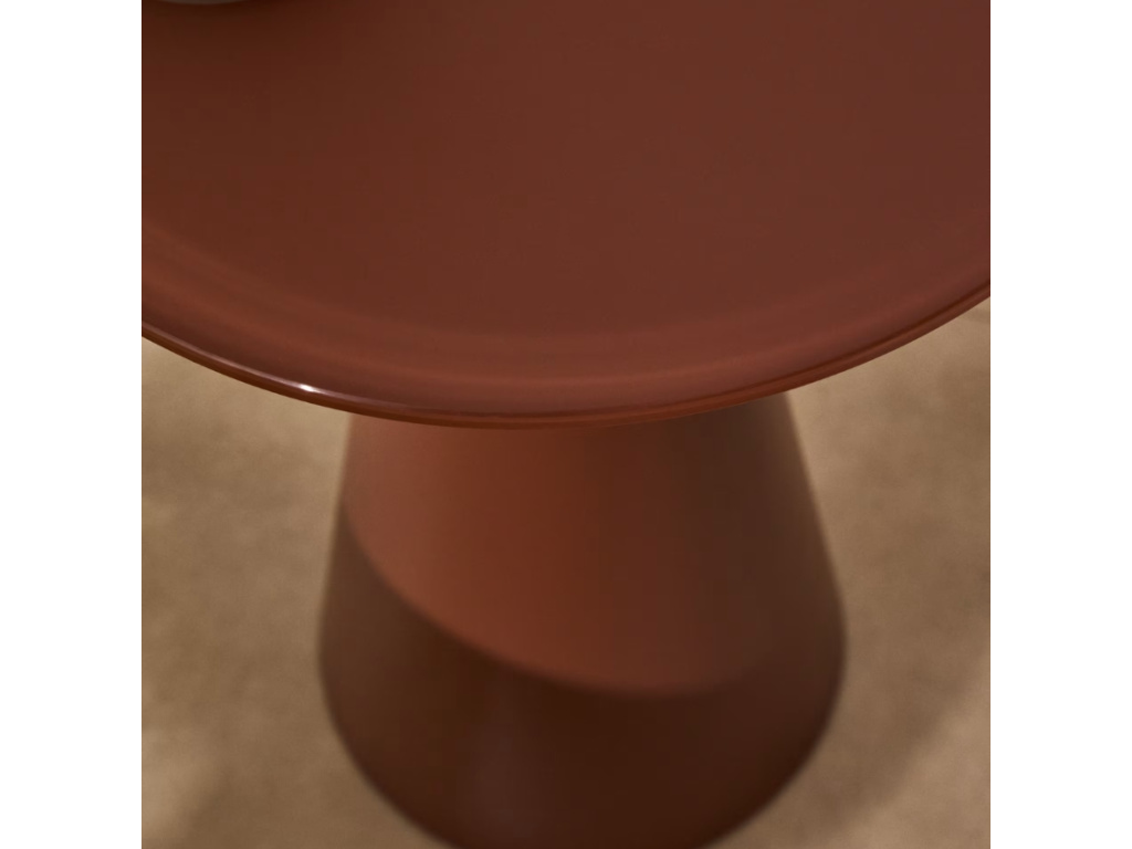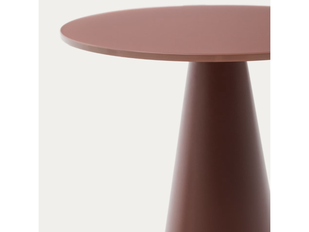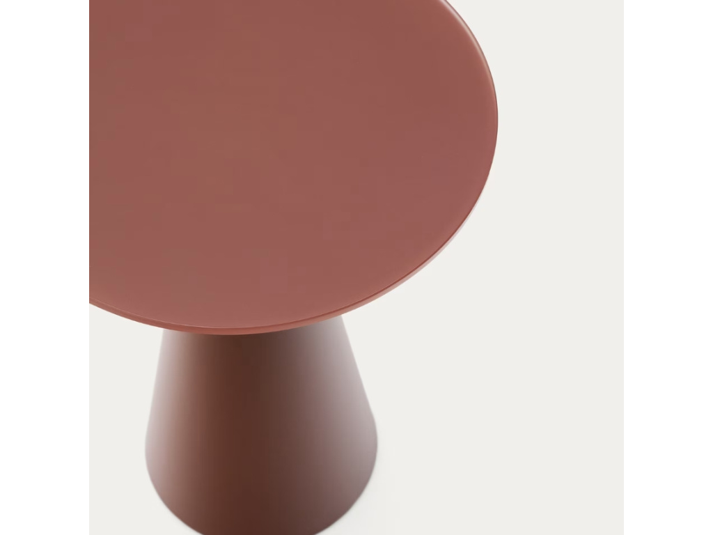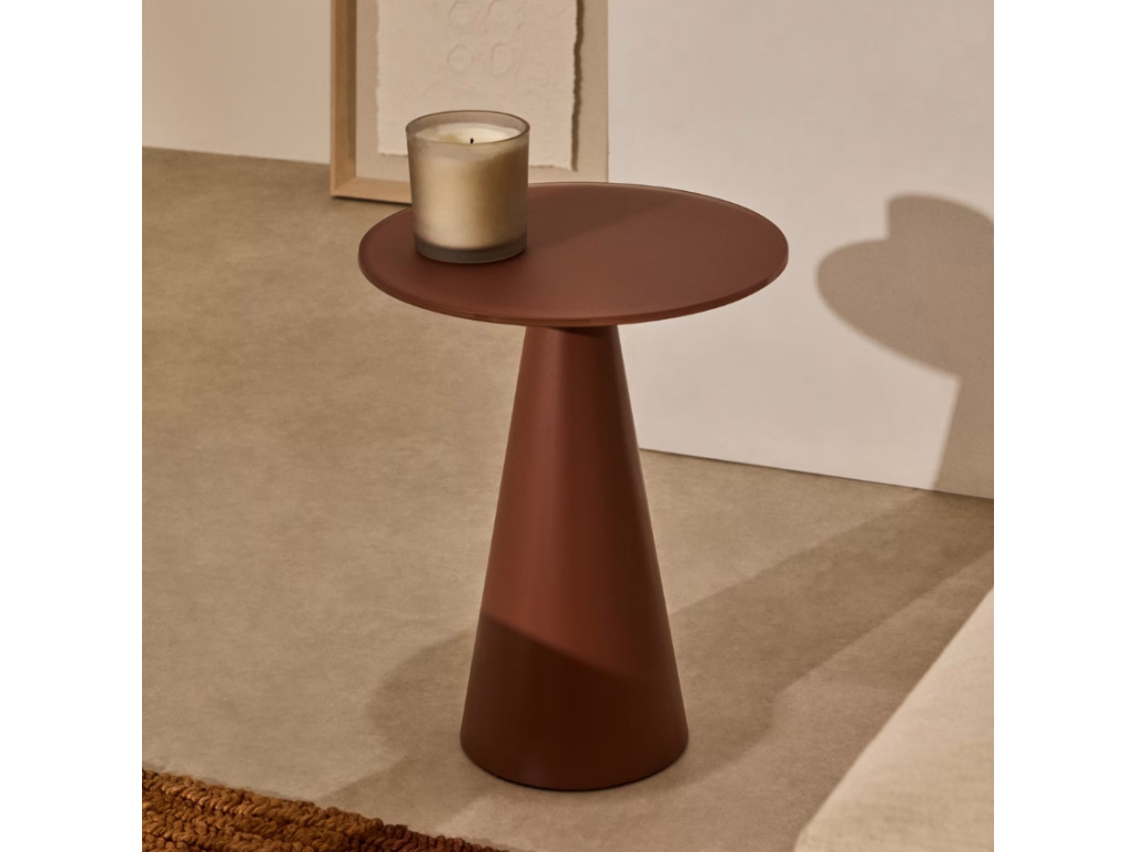 Kulatý odkládací stolek Kave Home Wilshire vás zaujme svými geometrickými liniemi a matným zbarvením v terakotově červeném odstínu. Je tvořený deskou z temperovaného tvrzeného skla, kterou si zamilujete pro její povrchovou úpravu – je totiž odolná proti otiskům prstů. Podnož stolu dodává svým kuželovitým tvarem produktu elegantní nádech, navíc je opatřena palstovými nastavitelnými chrániči, díky kterým se nemusíte poškození podlahy. Wilshire představuje stylový minimalistický kousek, který v interiéru doporučujeme doplnit dalšími produkty z této atraktivní série.