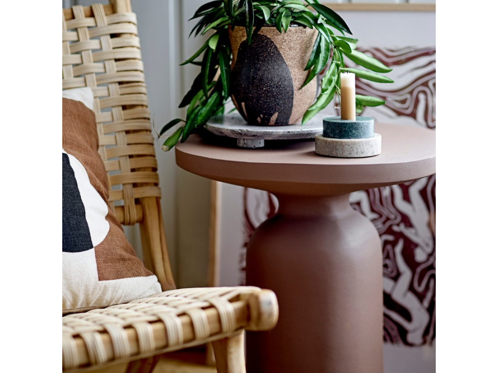 Odkládací stolek Millan od značky Bloomingville v krásné zemité hnědé barvě s matným povrchem bude ozdobou vedle vašeho oblíbeného křesla. Stolek je vyroben z hliníku s robustní baňatou nohou, díky které má až skulpturní kouzlo. Millan bude skvělým společníkem ve čtecím koutku, kde trávíte své volné chvilky s šálkem vaší oblíbené kávy.