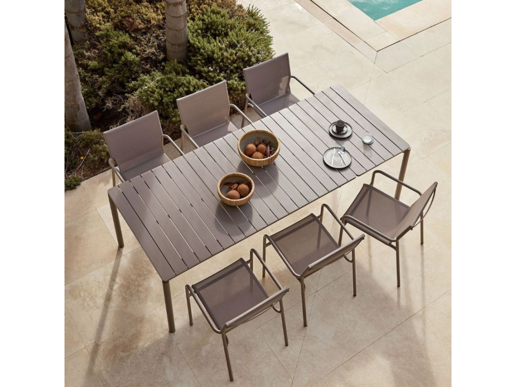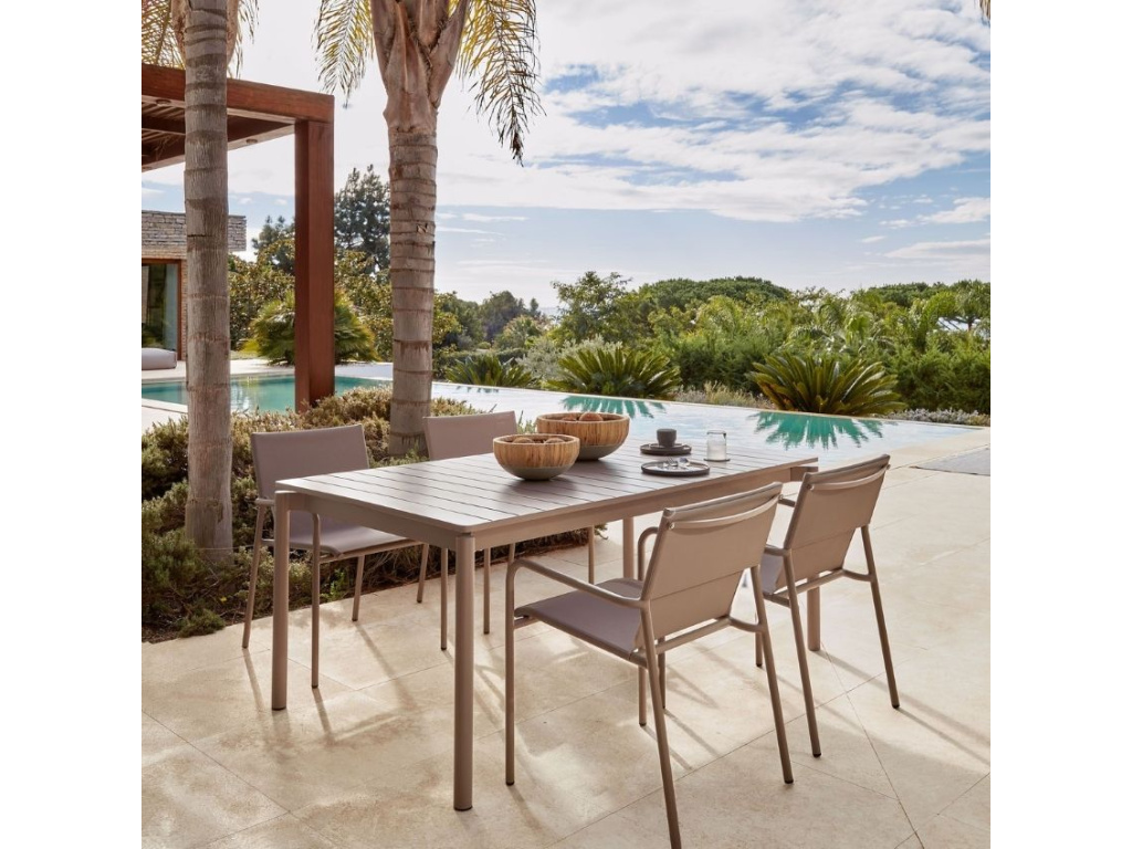 Matně hnědý zahradní stůl Kave Home v sobě skrývá 60 cm nástavec, díky kterému můžete jeho šířku kdykoliv snadno prodloužit. Deska i podnož stolku jsou vyrobeny z pevného lakovaného kovu a stůl tak můžete zatížit vahou až 80 kg. Je vhodný pro vnitřní i venkovní použití - skvěle se hodí například na terasu nebo pod pergolu. Díky výsuvnému rozkládacímu mechanismu pohodlně pohostíte i početnější návštěvu či rodinnou oslavu. V sérii Zaltana najdete také zahradní židle a rohovou pohovku, se kterými můžete vaše venkovní posezení dokonale sjednotit.