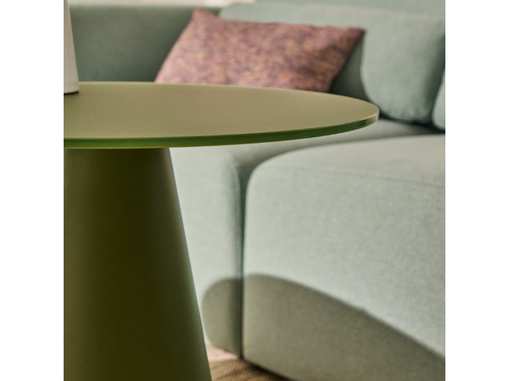 Podívám seMatně zelený skleněný kulatý odkládací stolek Kave Home Wilshire 50 cm