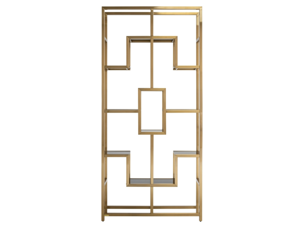 Čisté linie, vzdušnost a především luxusní nádech regálu Magnus od značky Richmond doplní interiéry v moderním i glamour stylu, ve kterých se klade důraz na eleganci a čistotu materiálů. Okázalost matné zlaté barvy nerezového rámu vnese do obývacího pokoje punc vznešenosti. Díky geometrickému zpracování můžete v regálu rafinovaně vystavit dekorace všeho druhu. Police jsou vyrobené z černého 8 mm silného bezpečnostního skla.