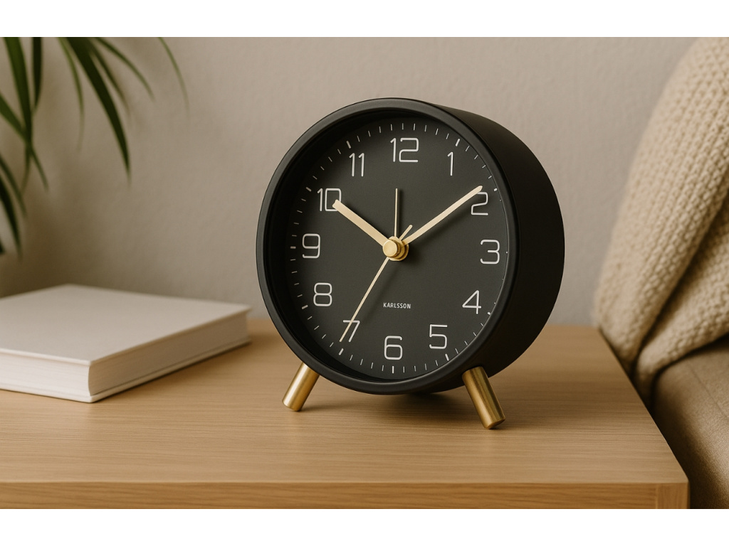 Moderní černý budík Imory je vyrobený ze železa a je ozvláštněn zlatými prvky. Zlaté jsou nejenom ručičky, ale i podnož. Budík se bude skvěle vyjímat u postele, nebo jako dekorace v obývacím pokoji.
