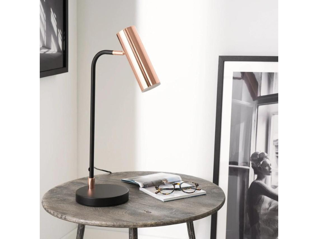 Moderní stolní lampa Somcasa Riola je krásným doplňkem pro různé typy interiérů. Vyniká svou neotřelou barevnou kombinací měděného stínidla a černé kovové podstavy. Jednoduchý elegantní design se skvěle hodí i na váš stůl.