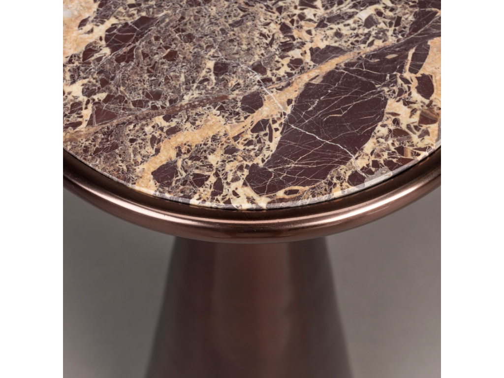 Stolek DUTCHBONE MOUNT se stane designovou ozdobou vašeho obývacího pokoje. Skvěle se hodí k pohovce i ke křeslu, využít ho můžete také jako podstavec pod květiny. Dostupný je ve dvou velikostech, které můžete v interiéru kombinovat. Stolek je tvořen kovovou podnoží, která zaujme nejen svým elegantním tvarováním, ale také svým měděným zbarvením. Na podnoži je usazena deska z černého mramoru s výraznou přírodní kresbou. Tento materiál s sebou přinese nádech luxusu a nadčasové elegance.