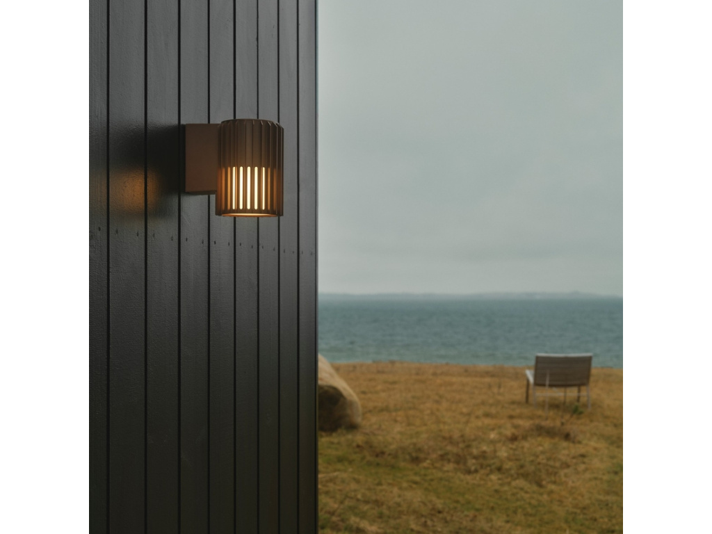 Kolekce venkovních svítidel Aludra od značky Nordlux, navržená studiem Jacob Jensen Design, zaujme sochařským válcovým tvarem a dekorativními lamelami, které vytvářejí působivý světelný efekt. V nabídce jsou nástěnná, stropní i sloupková svítidla v několika barvách – antracitové, černé či metalicky hnědé. Odolný hliníkový materiál zajišťuje dlouhou životnost i ve venkovním prostředí s nepříznivými podmínkami. Svítidla umožňují paralelní zapojení a funkci stmívání při použití chytré žárovky, případně stmívatelné žárovky a stmívače. Aludra získala ocenění Red Dot Design Award, mají záruku 10 let na poškození povrchu a skvěle doplní moderní exteriéry, kde se klade důraz na styl i funkčnost.