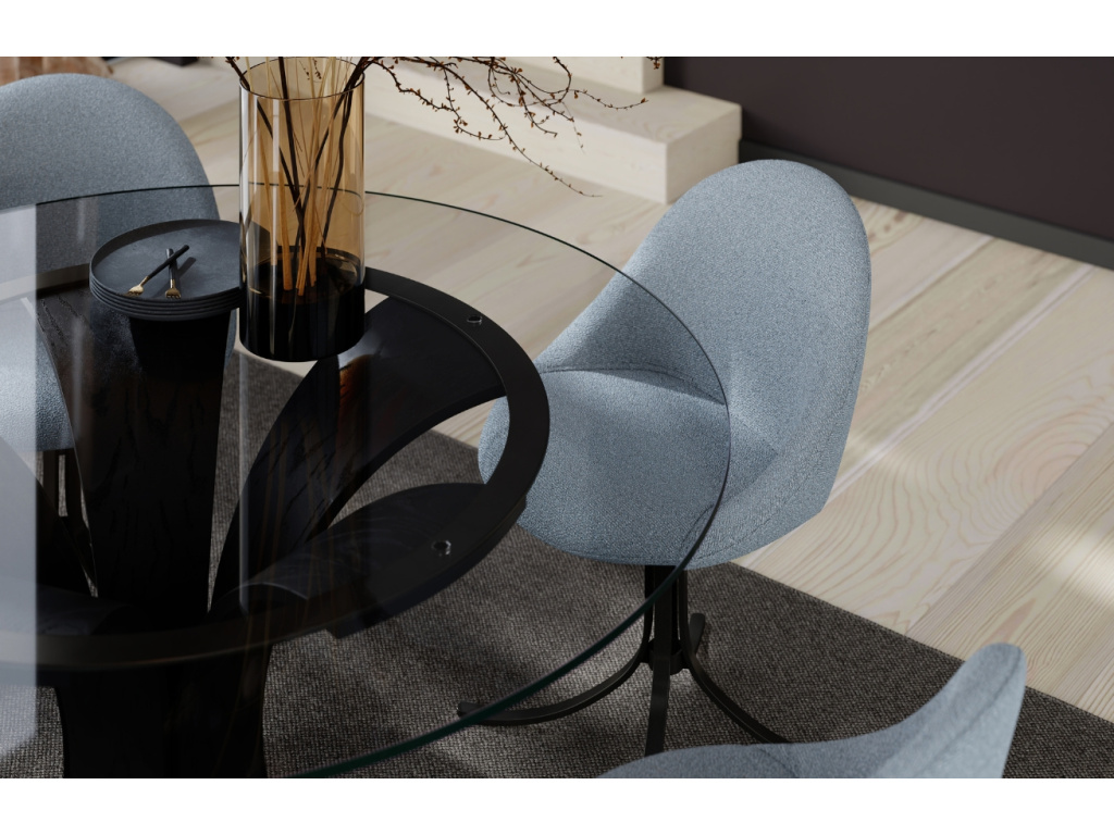 Židle Dolo od DAN-FORM je ztělesněním vytříbené elegance. Váš jídelní stůl promění v útulné a moderní místo. Díky měkkému příjemnému čalounění látkou bouclé nabízí pohodlné posezení, při kterém se budete cítit jako v bavlnce. Kovová podnož originálního trubkovitého tvaru je opatřena praktickou otočnou funkcí s níž se vám ke stolu bude dobře usedat – bez potřeby židli odsouvat. Dolo si můžete vybrat ze tří barevných variant.