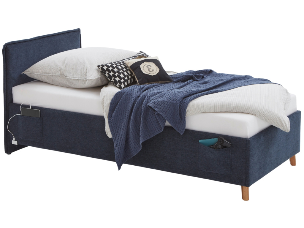 Stylová postel Fun s čalouněným rámem i prostorným čelem je skvělou volbou pro dětské i studentské pokoje. Na jejím boku najdete prostorné kapsy, do kterých se vejde vše, co bude potřeba mít před spaním po ruce – knížka, časopis, herní konzole i drobné hračky či brýle na čtení. Dalším praktickým detailem je zabudovaný výstup pro USB i USB-C, díky kterému je možné nabíjet telefon, MP3 přehrávač nebo třeba hodinky. Postel Fun je navíc dostupná ve čtyřech barvách, ze kterých si vyberou kluci i holky. K dostání je také varianta s čalouněným bočním panelem.