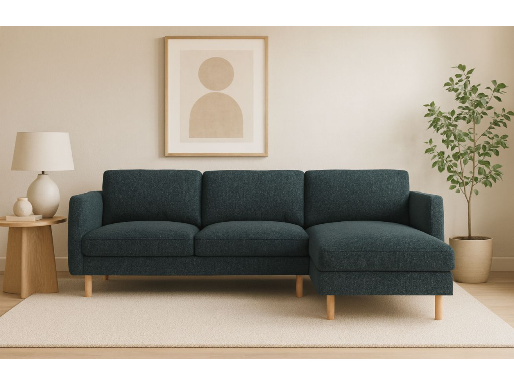 Rohová trojmístná pohovka Eden spojuje skandinávský design s výjimečným pohodlím a kompaktními rozměry. Díky čistým liniím, elegantním područkám a zaoblené dřevěné podnoži působí lehce a vzdušně, což z ní dělá ideální volbu do menších interiérů. Přestože nezabere mnoho místa, nabízí útulné a komfortní sezení, které vybízí k odpočinku. Sedací část je vyplněna přírodním peřím, které poskytuje měkkost a příjemnou oporu při každodenním lenošení. Látka Puente je skutečnou ozdobou této pohovky. Vzniká kombinací čtyř druhů přízí lišících se tloušťkou, barvou a charakterem, které společně vytvářejí bohatou a výraznou strukturu. Povrch je jemně členitý s drobnými výstupky, matný na pohled a příjemně hřejivý na dotek. Látka má více než stoletou tradici, ale díky moderním barevným kombinacím se snadno začlení do interiérů od klasických po současné. Pohovka Eden je pečlivě vyrobena na zakázku v Evropě, což zaručuje špičkovou kvalitu zpracování, vysokou odolnost a dlouhou životnost.