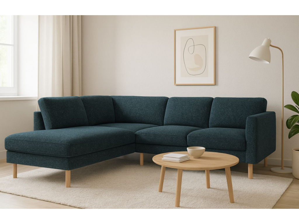 Rohová čtyřmístná pohovka Eden spojuje skandinávský design s výjimečným pohodlím a kompaktními rozměry. Díky čistým liniím, elegantním područkám a zaoblené dřevěné podnoži působí lehce a vzdušně, což z ní dělá ideální volbu do menších interiérů. Přestože nezabere mnoho místa, nabízí útulné a komfortní sezení, které vybízí k odpočinku. Sedací část je vyplněna přírodním peřím, které poskytuje měkkost a příjemnou oporu při každodenním lenošení. Látka Puente je skutečnou ozdobou této pohovky. Vzniká kombinací čtyř druhů přízí lišících se tloušťkou, barvou a charakterem, které společně vytvářejí bohatou a výraznou strukturu. Povrch je jemně členitý s drobnými výstupky, matný na pohled a příjemně hřejivý na dotek. Látka má více než stoletou tradici, ale díky moderním barevným kombinacím se snadno začlení do interiérů od klasických po současné. Pohovka Eden je pečlivě vyrobena na zakázku v Evropě, což zaručuje špičkovou kvalitu zpracování, vysokou odolnost a dlouhou životnost.