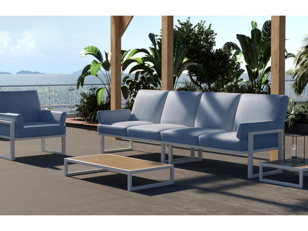 Více infoModrá čtyřmístná zahradní pohovka MESONICA Soledo s bílou podnoží 270 cm