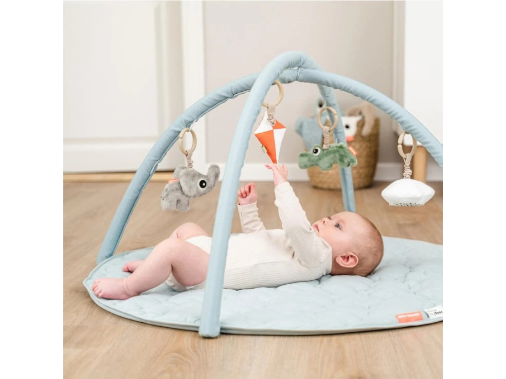 Hrací podložka Playground je ideálním místem pro první objevování světa. Měkká a pohodlná podložka s hrazdičkou nabízí množství podnětů, které stimulují smysly a podporují vývoj jemné motoriky už od útlého věku. Zavěšené hračky různých tvarů a textur povzbuzují děti k pohybu, natahování a zkoumání, zatímco jemné barvy a hravý design vytvářejí klidné a příjemné prostředí pro hru i odpočinek. Podložka je pratelná, snadno složitelná a přenosná, ideální pro každodenní použití doma i na cestách. Perfektní volba pro bezpečnou a zábavnou hru na bříšku i na zádech!