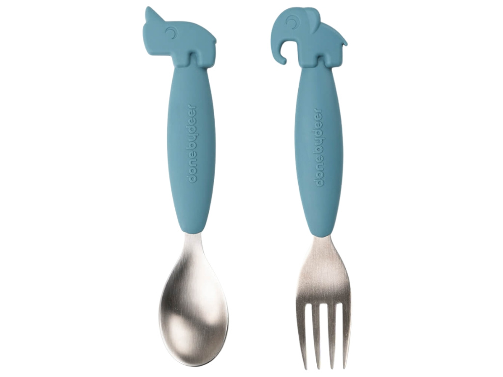 Sada příborů Deer Friends se dětem velmi snadno drží. Pevný a stabilní úchop pomůže vašim nejmenším se naučit samostatnosti. Malí jedlíci se snadněji budou soustředit, díky veselým zvířátkům Done by Deer. Vidlička Elphee a lžička Nozo potěší každého raubíře i princeznu.