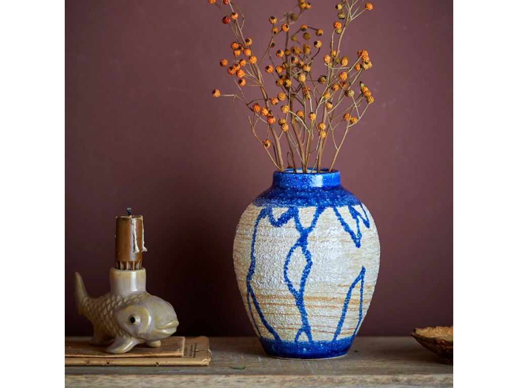 Váza Avon od značky Bloomingville není jen dekorací, ale uměleckým gestem, které oživí každý interiér. Její organický tvar, jemně rustikální kameninový povrch a ručně malované kobaltově modré motivy připomínají tahy štětce na plátně – jedinečné, intuitivní a plné charakteru. Každý kus je originál, který vypráví vlastní vizuální příběh. Ať už vázu naplníte květinami nebo ji necháte zazářit samostatně, vždy zanechá dojem. Avon přinese do prostoru barvu, texturu i nenucenou eleganci s lehce bohémským nádechem. Skvěle zapadne jak do moderního, tak i vintage nebo eklekticky laděného interiéru.