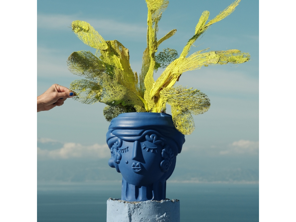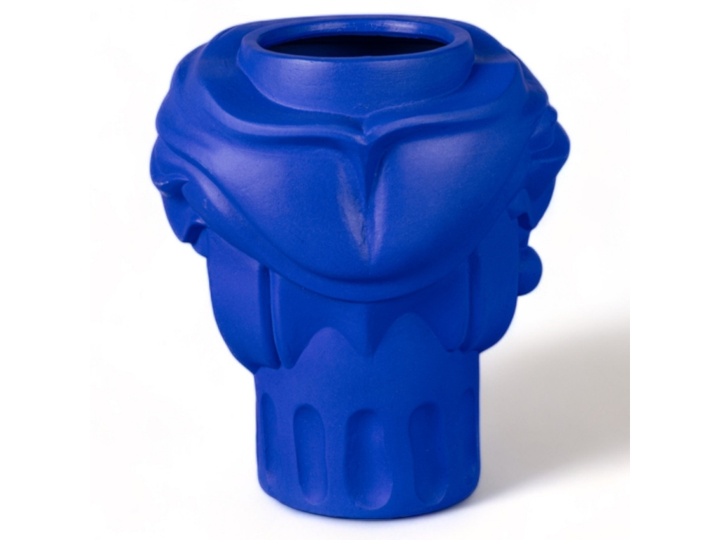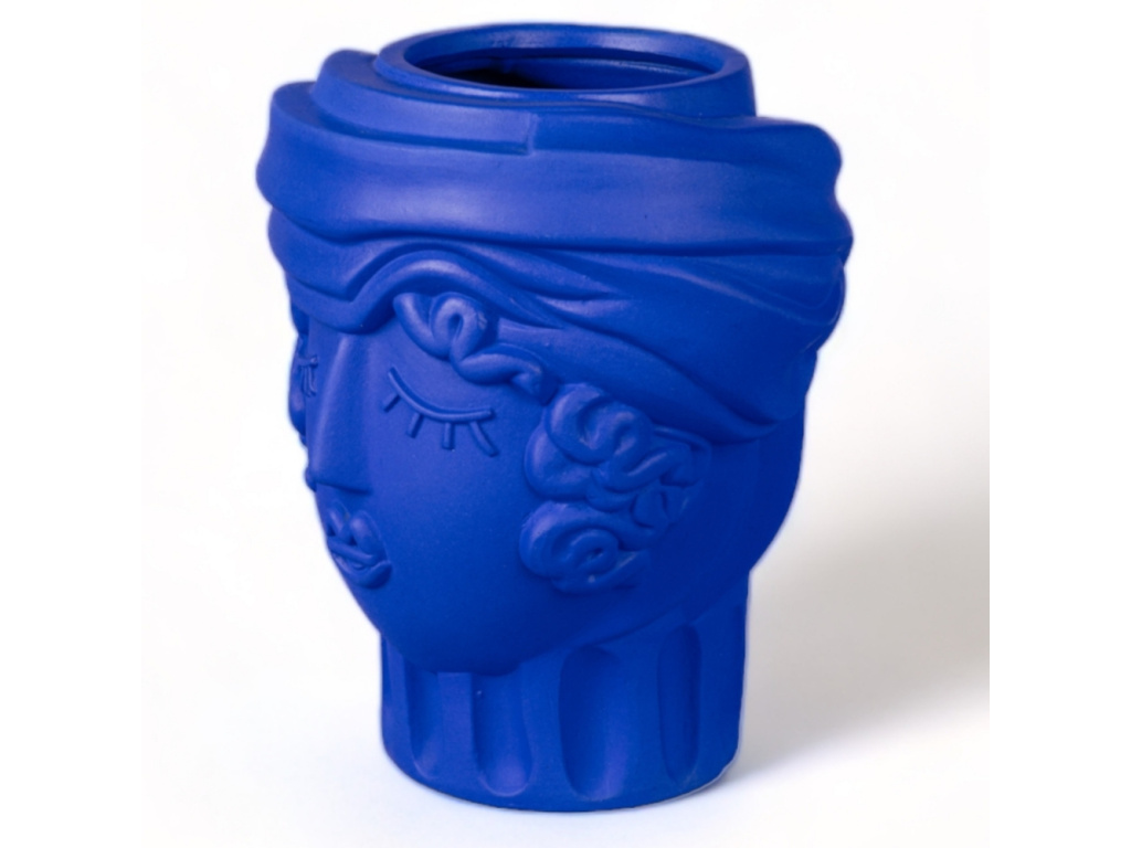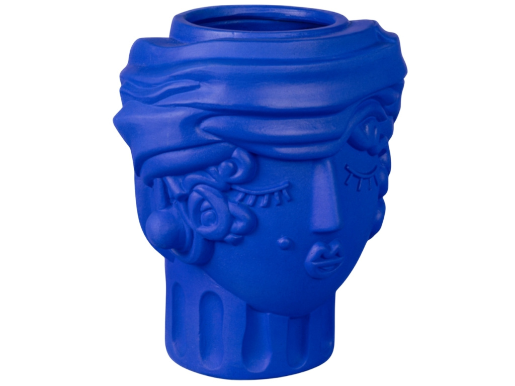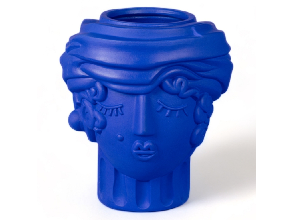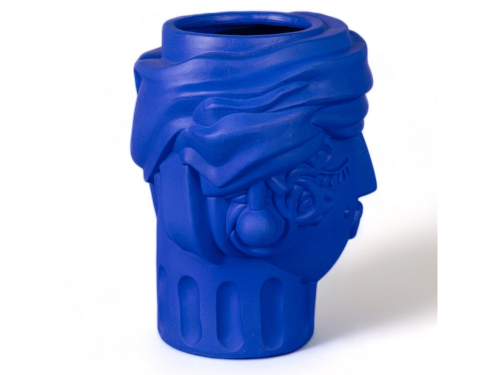 Váza Women od značky Seletti v sobě nese energii Středomoří, ozvěny antických mýtů i hravou lehkost současného designu. Autorem návrhu je Antonio Aricò, jenž tradiční motivy interpretuje s lehkostí, nadsázkou a moderním přístupem. Stylizovaná ženská tvář odkazuje na tradici sicilských maurských hlav, ale zbavuje ji historické těžkopádnosti a nahrazuje ji svěží, téměř ilustrativní estetikou. Váza je vyrobena z terakoty, tradičního materiálu s tisíciletou historií, a opatřena sytě modrou glazurou. Právě intenzivní modrá barva dodává objektu svěžest a hloubku, zatímco jemná struktura terakoty zůstává patrná na dotek i na pohled. Women skvěle vynikne samostatně na polici či komodě, stejně jako v kombinaci s dalšími objekty, kde se stane nepřehlédnutelným akcentem s osobitým šarmem.