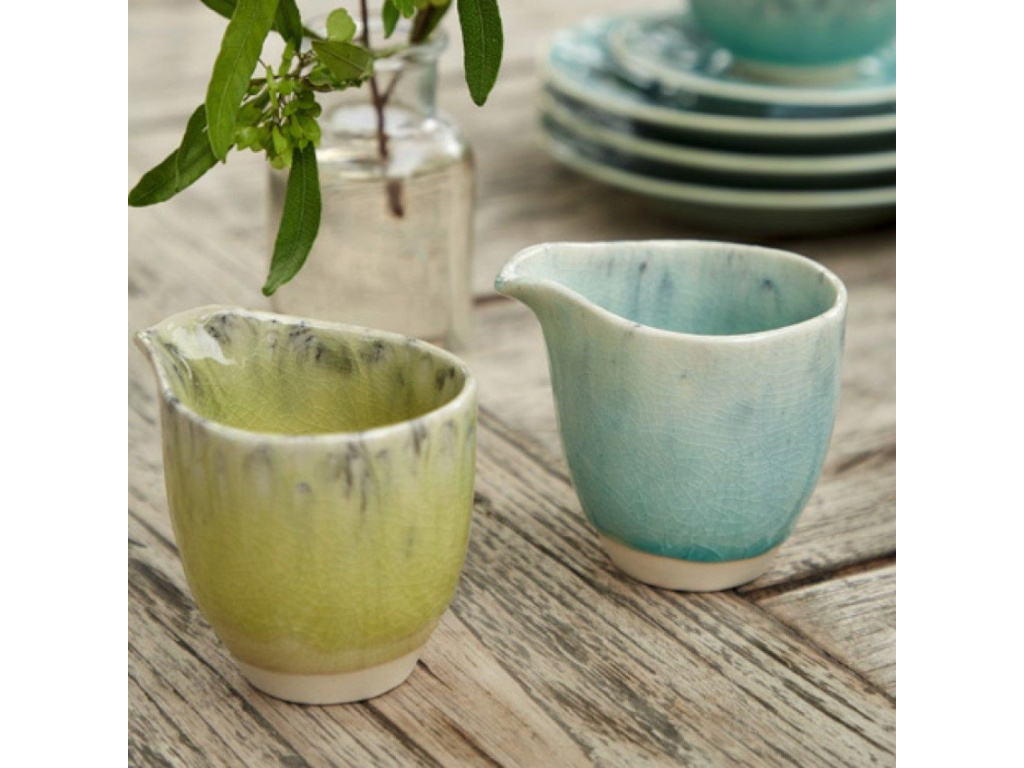 Modrá kameninová konvička na mléko je praktickým doplňkem při posezení u kávy či čaje. Jemná glazura s popraskaným designem a černými odstíny dotváří starožitný dojem. Takový to nenápadný kousek ladící s vaším servisem vždy potěší.