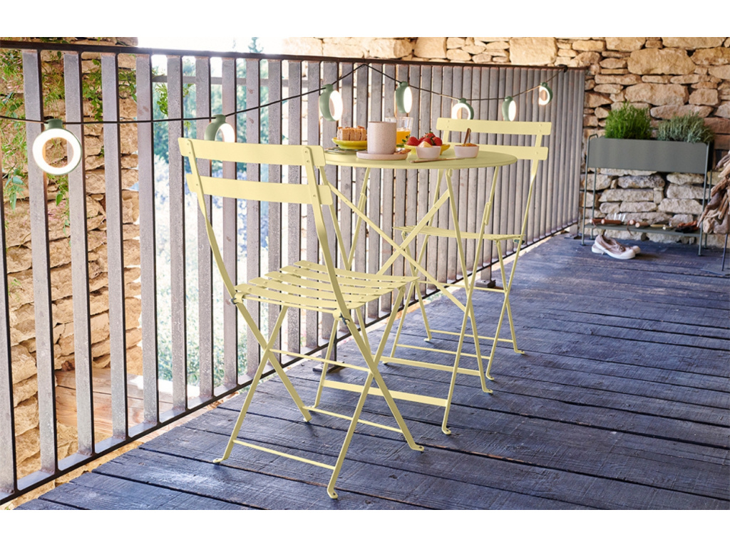 Celokovová židle Bistro je inspirována židlemi, které byly vyráběny na konci 19. století a které byly typické pro prodejce limonád a rychlého občerstvení. Dnešní moderní pojetí této židle neztratilo nic ze své předešlé slávy ani funkčnosti. Naopak, model, který přestavuje společnost Fermob získal na vynalézavosti a veselosti. Židle Bistro jsou vyráběny z prvotřídních materiálů a jsou testovány tak, aby splňovaly standardy kvality evropských norem (NF EN 581-1 a NF EN 581-2). Exkluzivní systém antikorozní úpravy pro venkovní použití a anti-UV práškový lak (standardizované testy AFNOR) dělá z židle ideálního společníka jak do venkovních, tak i do komerčních prostor.