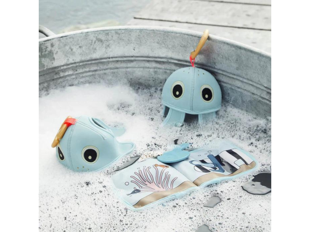 Zábavná hra může být i večerní koupání! Velryba Wally vyrobená z neoprenu je skvělým dárkem pro dětí od 6 měsíců. Lehká a příjemná hračka do vody bude kamarádem na letní koupání v bazénu i večerní šplouchání ve vaně. Wally se dětem velmi příjemně drží a díky praktické sponě je možné snadno ho připevnit na okraj bazénu nebo na vodovodní baterii.