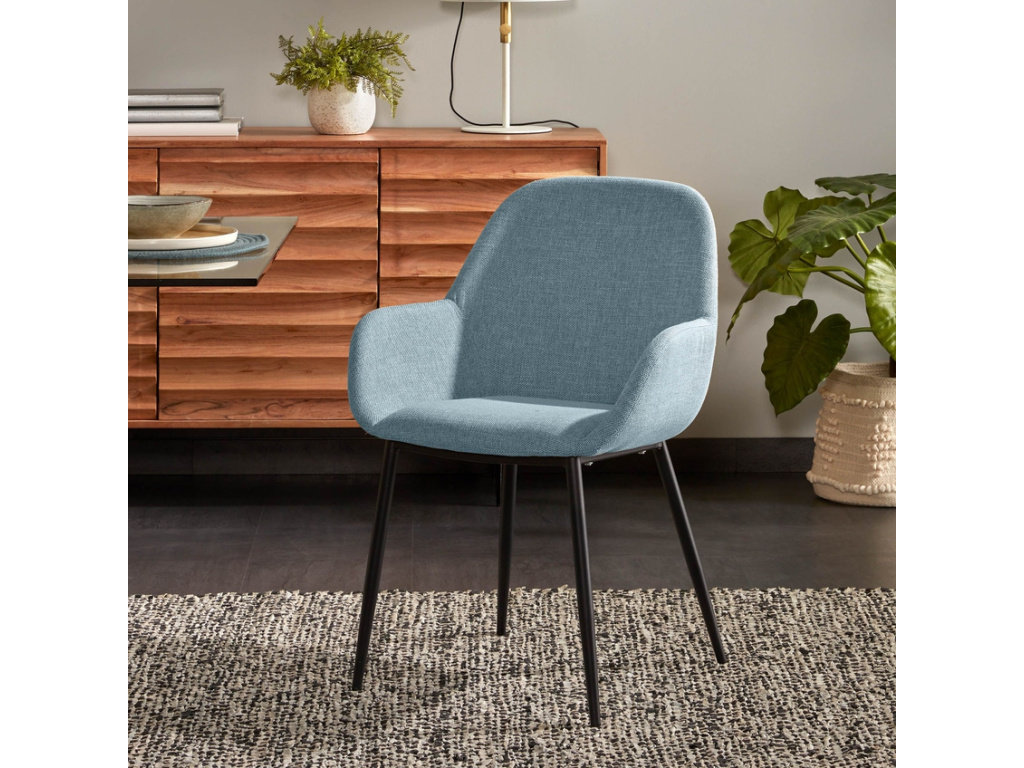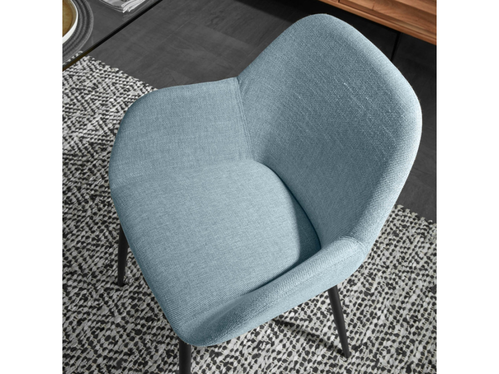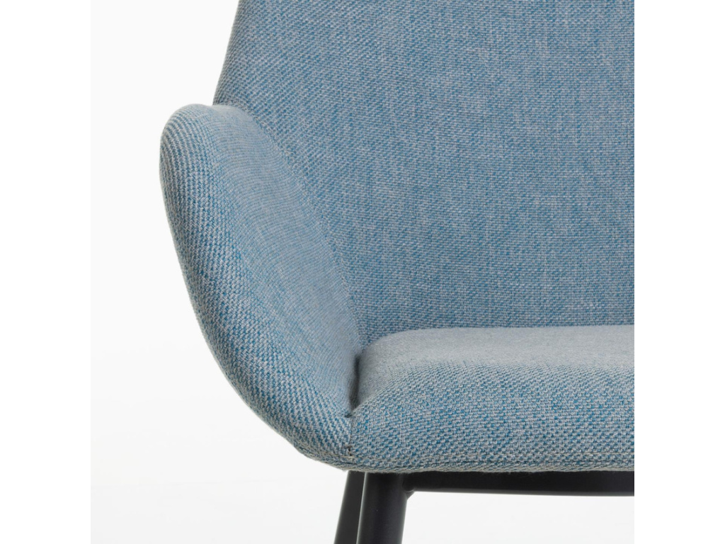 Stylová jídelní židle Kave Home Konna zaujme svým jedinečným retro designem. Příjemné látkové čalounění v modré barvě vytváří v kombinaci s černě lakovanou kovovou podnoží atraktivní kontrast, díky čemuž je tato židle neotřelým kouskem nábytku. Díky praktickým područkám získáte maximální komfort a prožitek z posezení. Židle zaujme skvělé místo v klasických i moderních interiérech.
