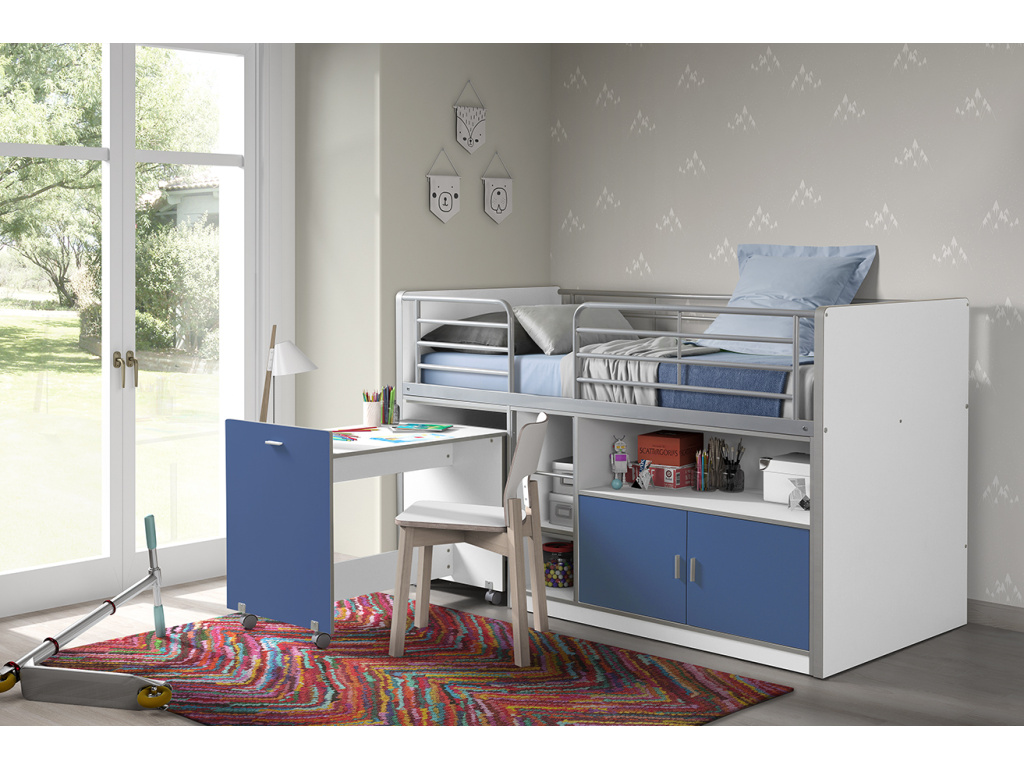 ProhlédnoutModrá patrová postel se stolkem a komodou Vipack Bonny 90 x 200 cm